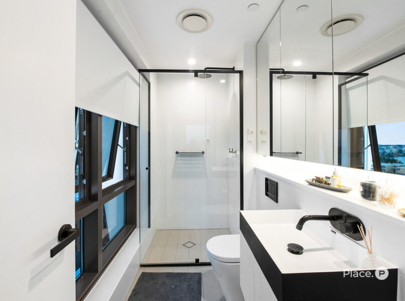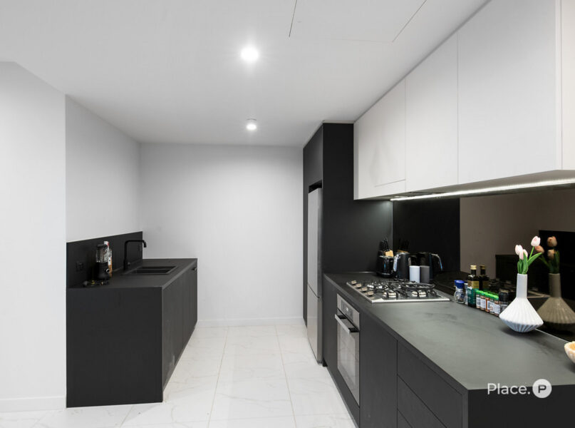 Capturing fantastic city views and plentiful natural light, the apartment showcases attractive tiled floors and a fresh white colour palette, balanced with black detailing. Stepping inside, you will be greeted by a spacious open-plan living and dining area. Ensuring brilliant indoor-outdoor connection, large glass sliding doors open out to a covered balcony with a stunning urban vista.
