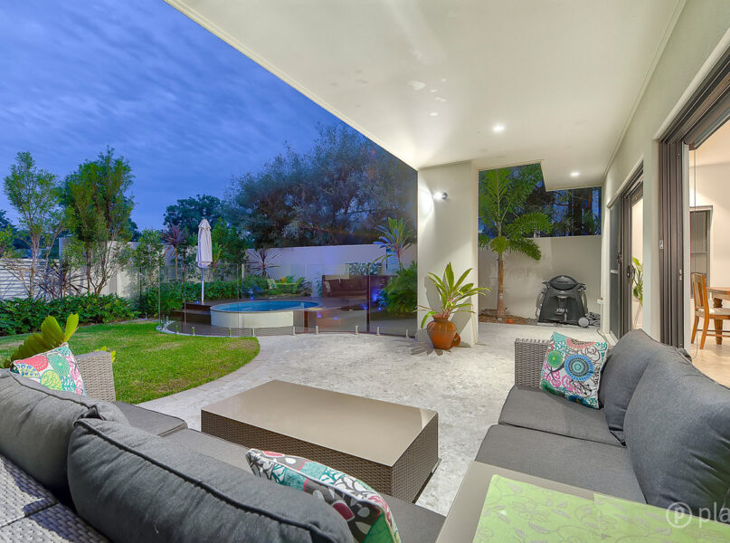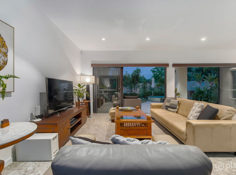 Opening out from the main living area double sliding doors and crim safe screening, the rear of the property boasts enviable eastern aspect perfect for entertaining, with a large covered patio for outdoor dining and lounging, manicured lawn and a magnificent plunge pool.