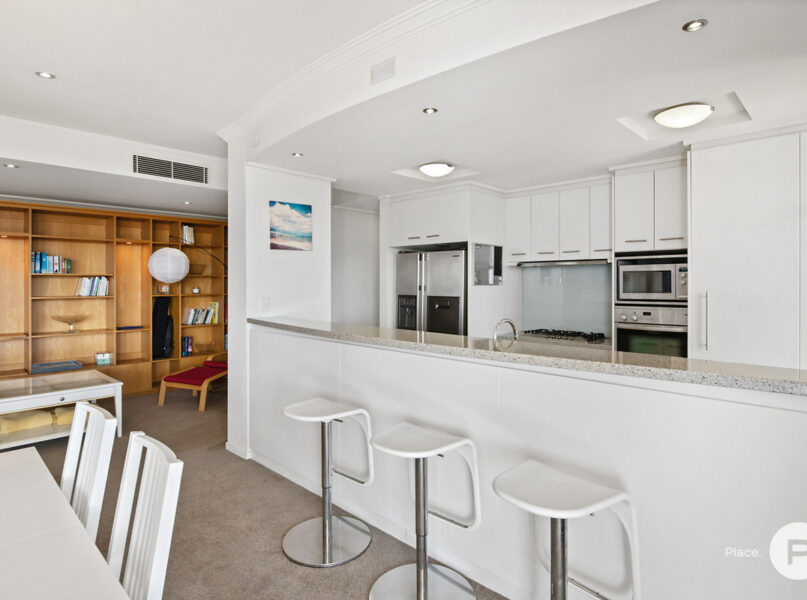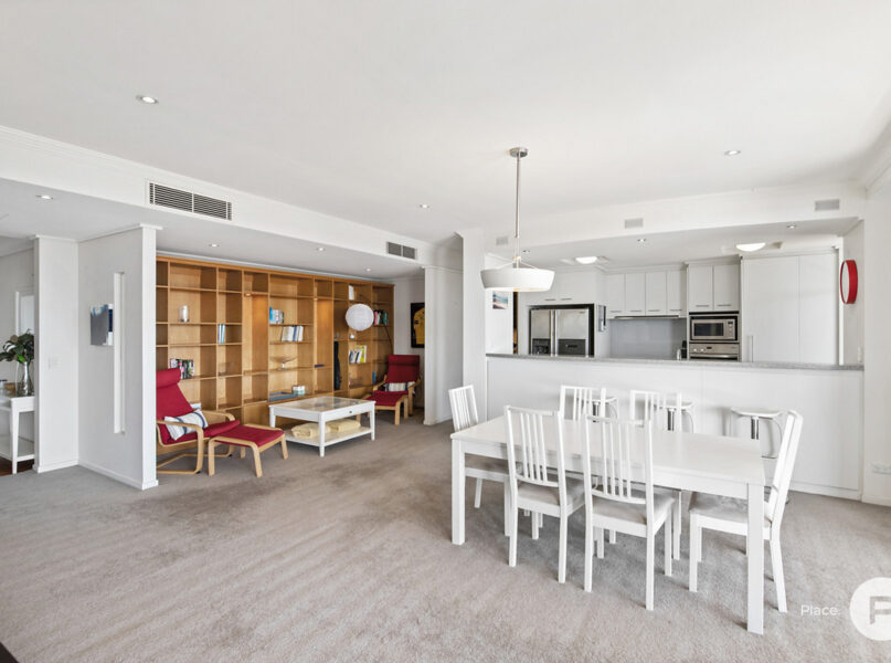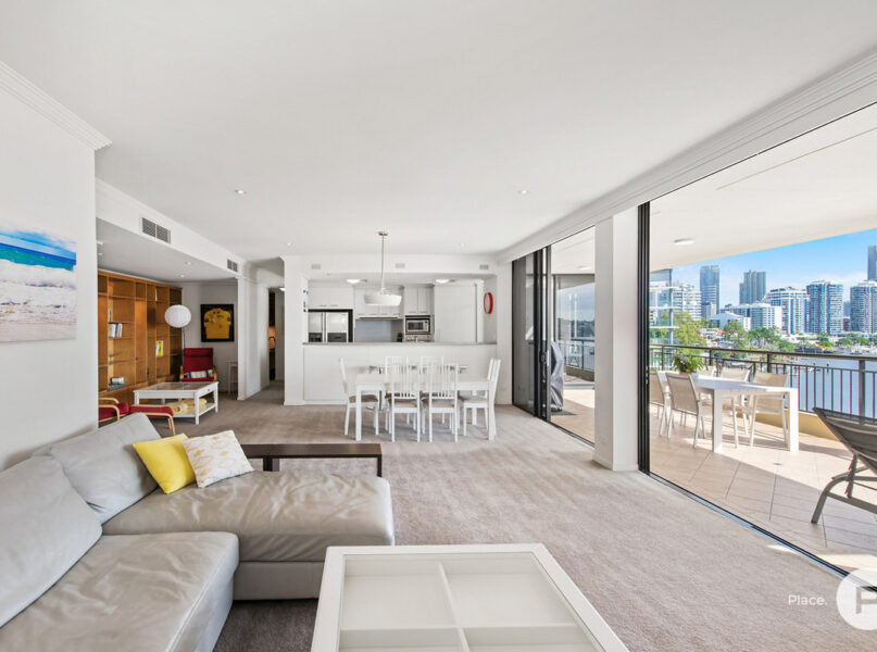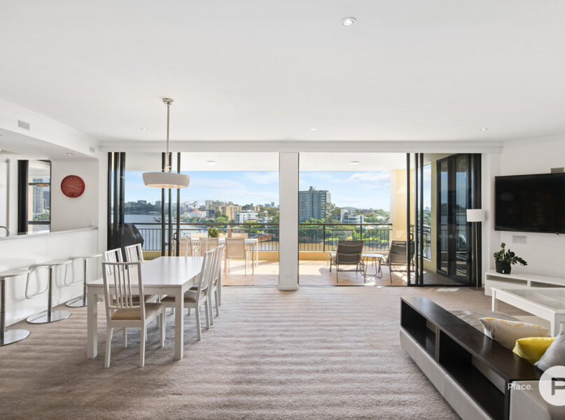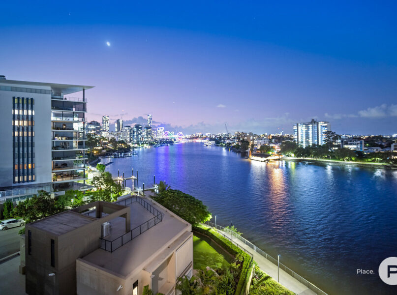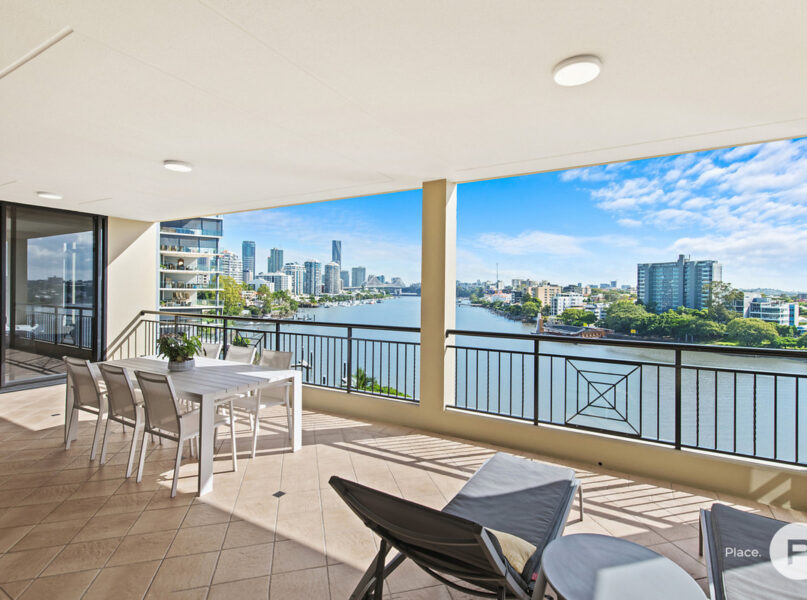 One of just 32 properties in the tightly-held ‘Riyala’ complex, this north-east-facing residence offers 208sqm of stylish living and one of Brisbane’s best vantage points. Looking out across two stretches of the Brisbane River and to the Story Bridge and the iconic city skyline beyond, this extraordinary abode provides everything entertainers and luxury-lovers alike could want for.