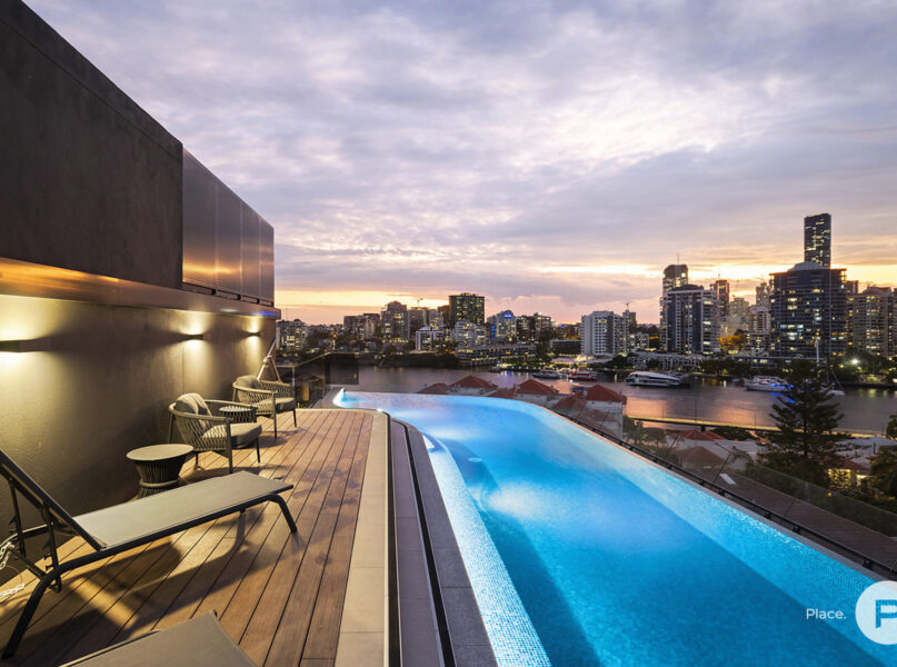 Close to scenic riverwalks and the Sydney Street Ferry Terminal, this extraordinary apartment is near the popular Howard Smith Wharves, James Street and Gasworks precincts. Leafy New Farm Park and the Brisbane Powerhouse theatre are streets away, while a collection of prestigious schools and universities are also easily accessible from this address.