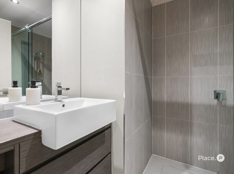 On the second level, two stylishly appointed bedrooms await, both serviced by their own modern ensuite and ceiling fans. The master bedroom includes a private balcony, air-conditioning and dual walk-in robes, while the second bedroom is complete with a built-in robe.