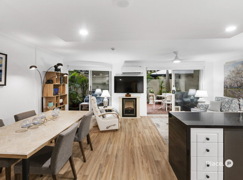 At the heart of the residence is a corner style kitchen with stainless steel appliances, well-appointed bench space and breakfast bar, conveniently servicing the living, dining and balcony for year-round entertaining.