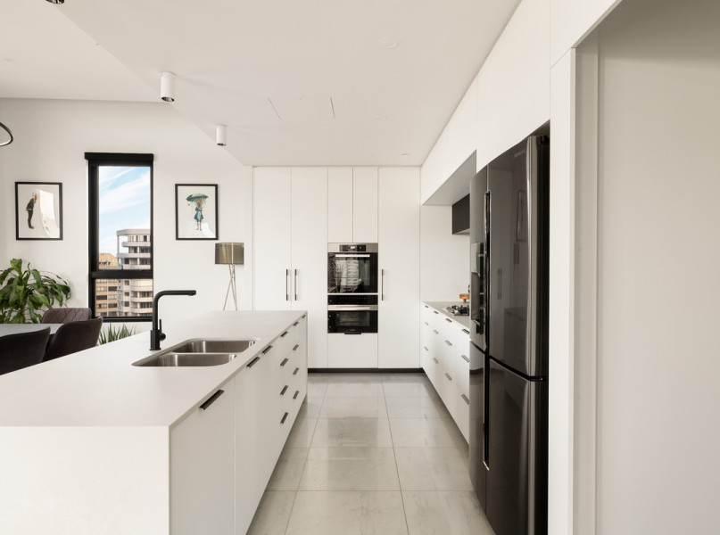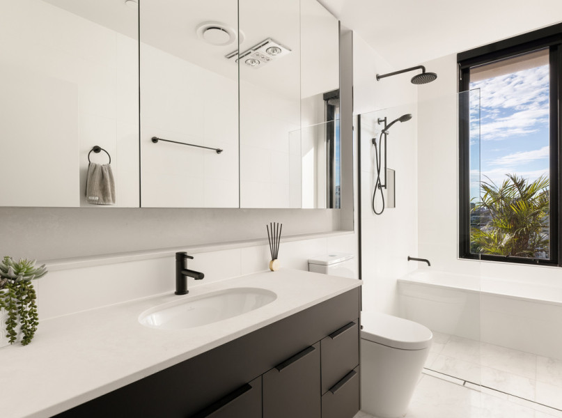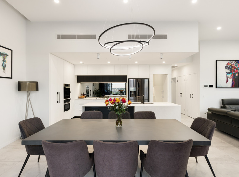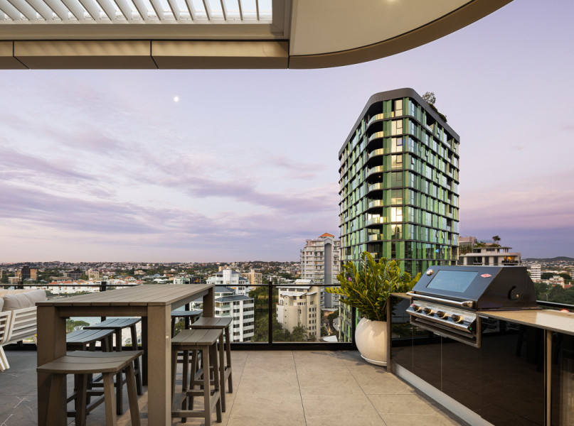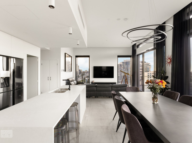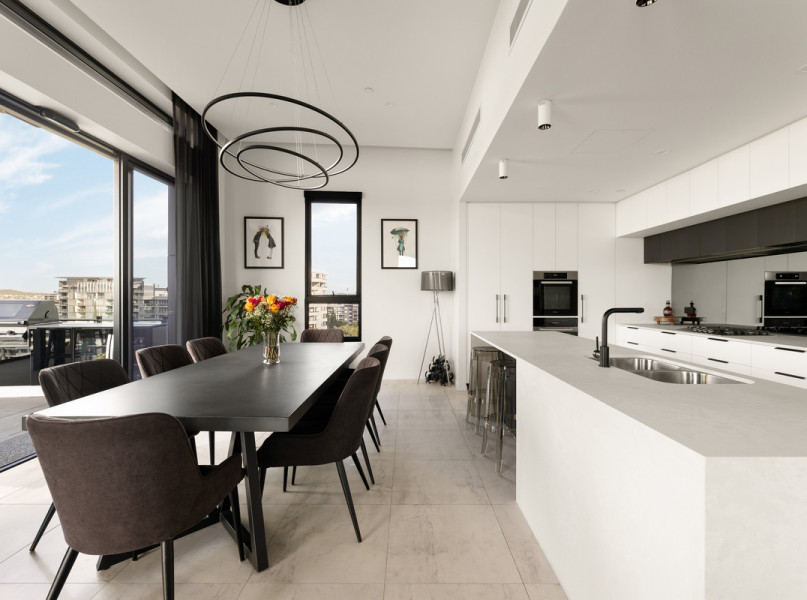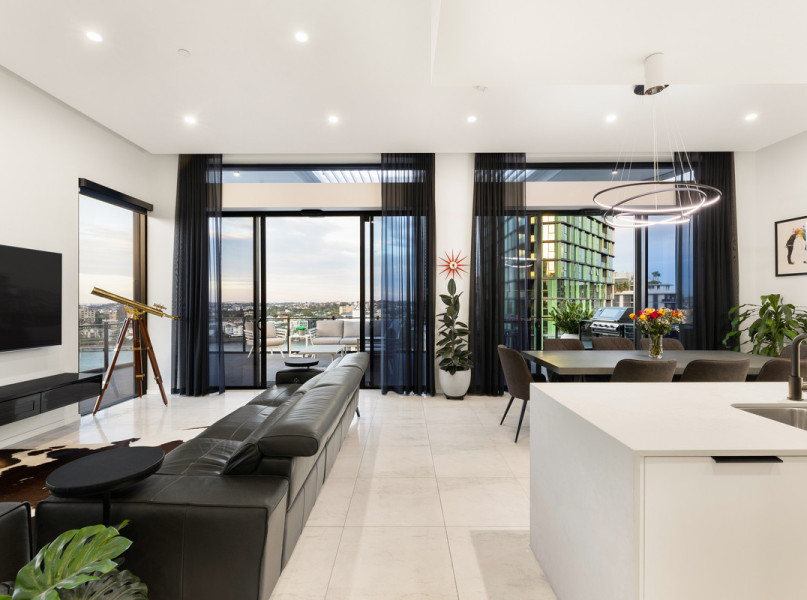 Expertly crafted to highlight the stunning vista and encourage ease of living, the property boasts a generous open-plan living and dining area with plentiful space for hosting guests. Bathed in natural light, this sophisticated central living area spills out onto a covered north-facing balcony capturing extraordinary city and river views. Here, toast the sunset in style, share a delightful al fresco meal or gather loves ones for an unforgettable celebration. Automatic doors opening out to the outdoor space allow seamless transition.