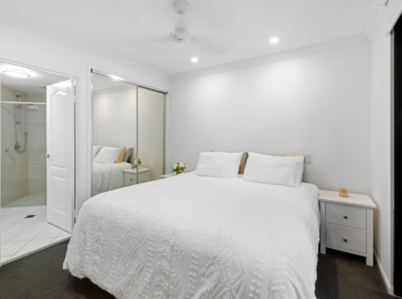 The master suite enjoys a built-in robe and luxurious ensuite with a contemporary frameless glass shower, while the well-sized second bedroom features a built-in robe and a well-appointed main bathroom featuring a shower over bath. Split-system air conditioning.