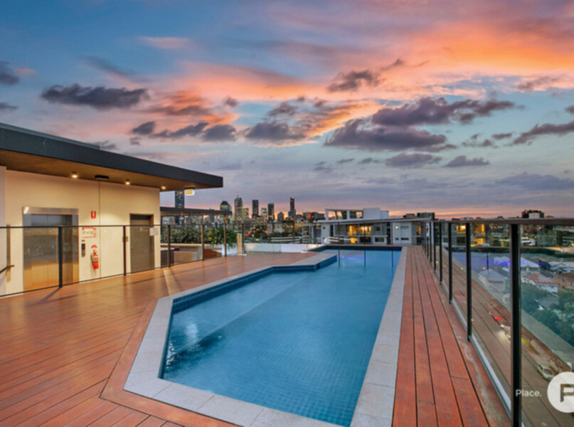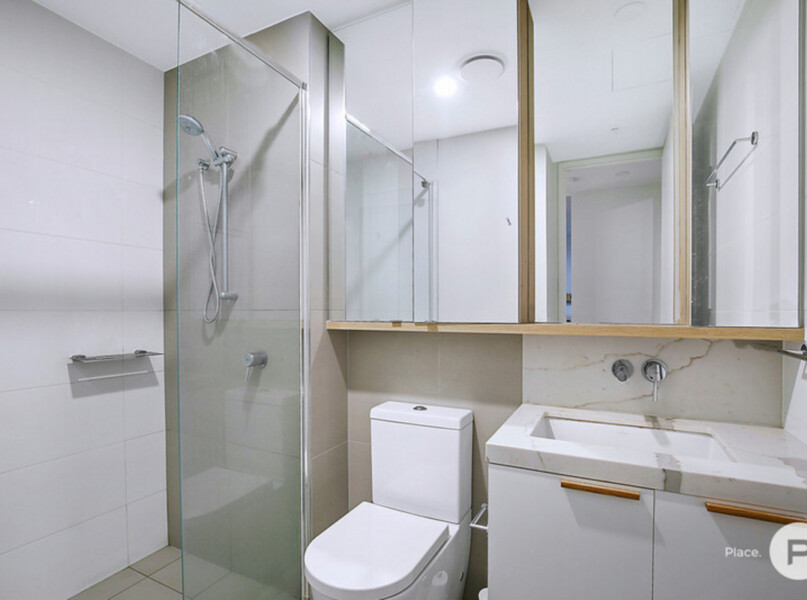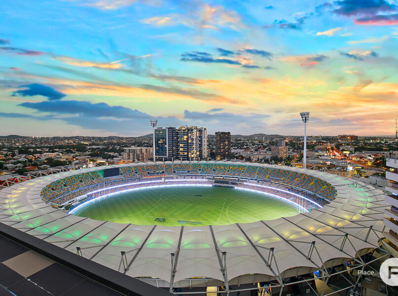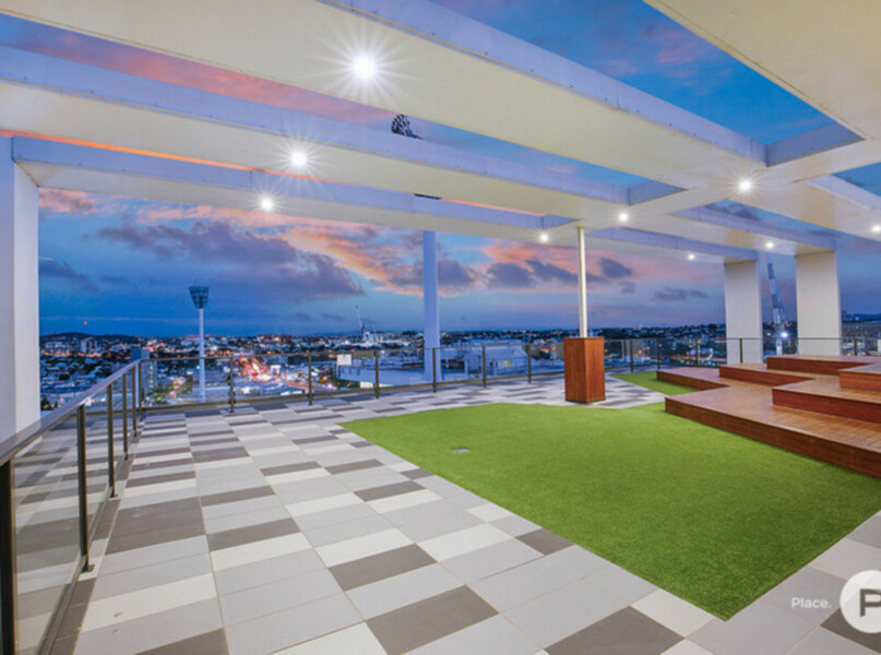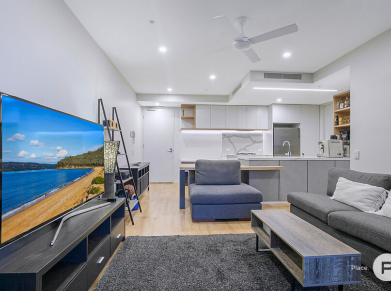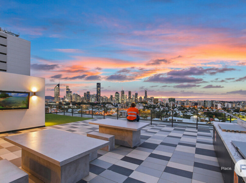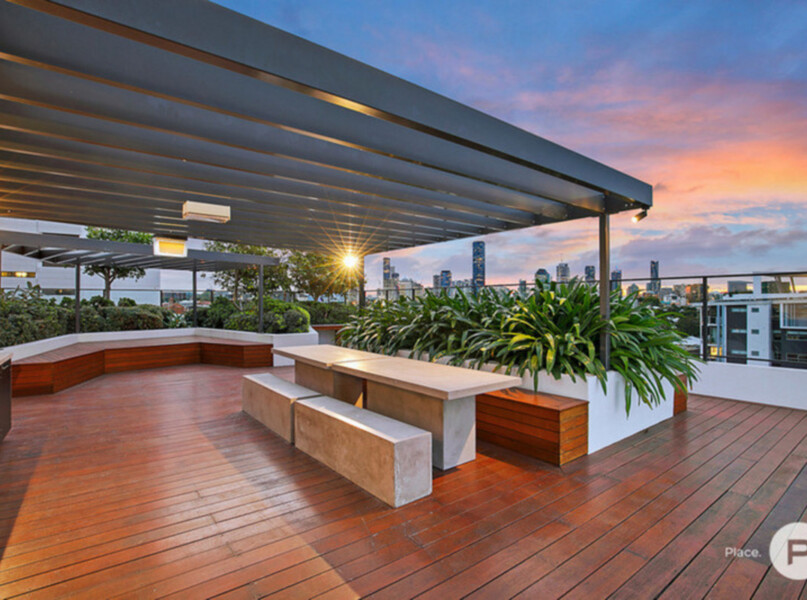 Looking out to magnificent Woolloongabba views, a spacious open-plan living and dining area allows you to relax and host guests in style. Steps away, a covered balcony provides a fabulous setting for al fresco meals and sunset drinks. You will also find a functional study nook, plus a modern kitchen displaying a breakfast bar, stone benchtops, quality appliances and ample cupboard storage.