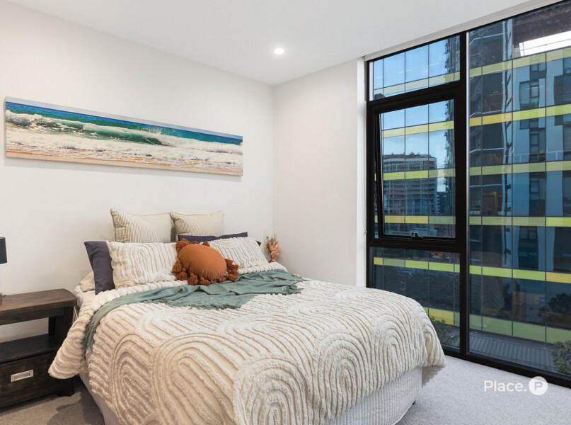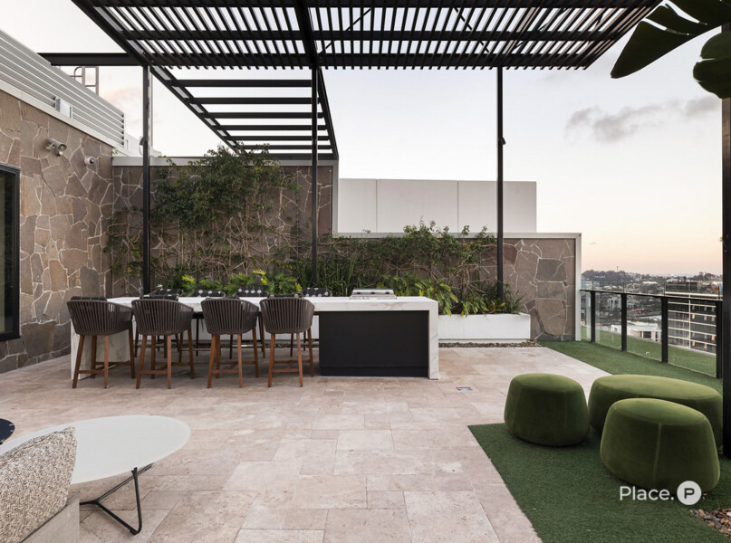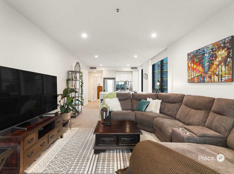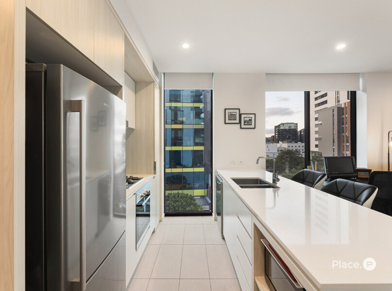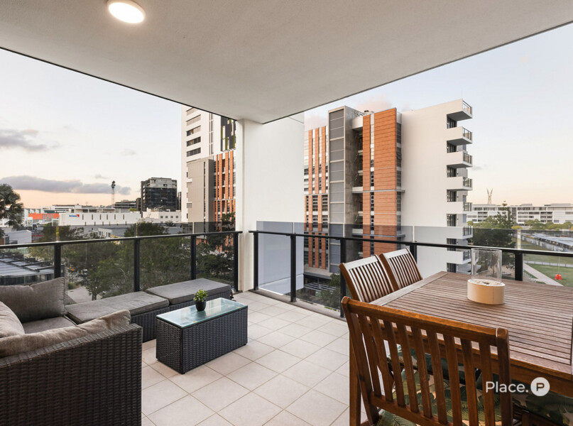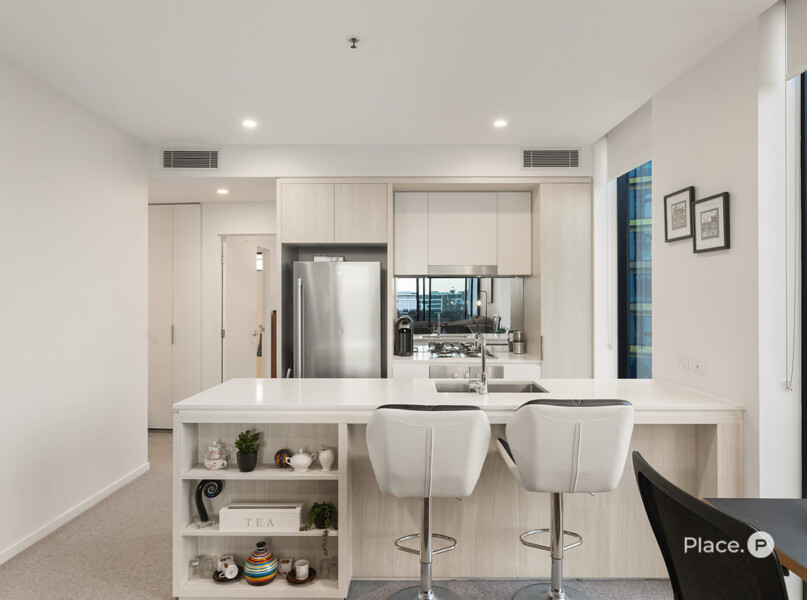 Forming the apartment’s heart is a spacious open-plan living and dining area, plus an exceptional kitchen displaying a breakfast bar, quality appliances and ample cupboard storage. Steps away, a covered corner balcony looking out across Newstead is where you will want to spend time with loved ones.