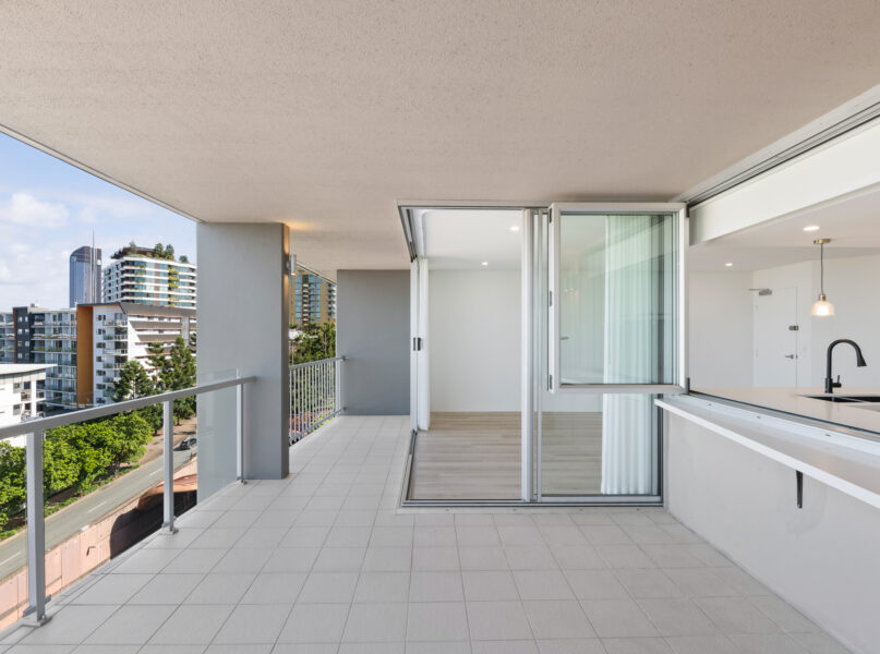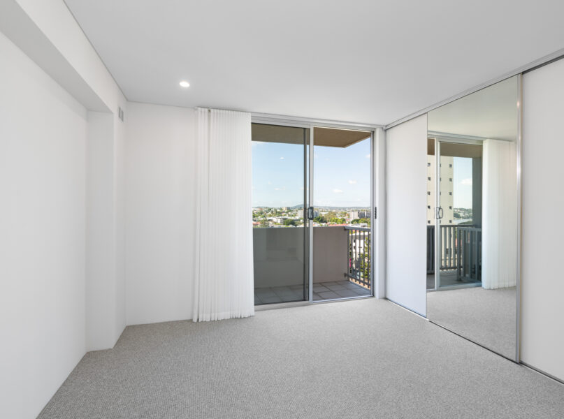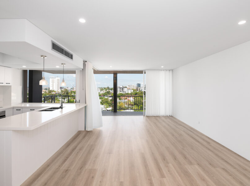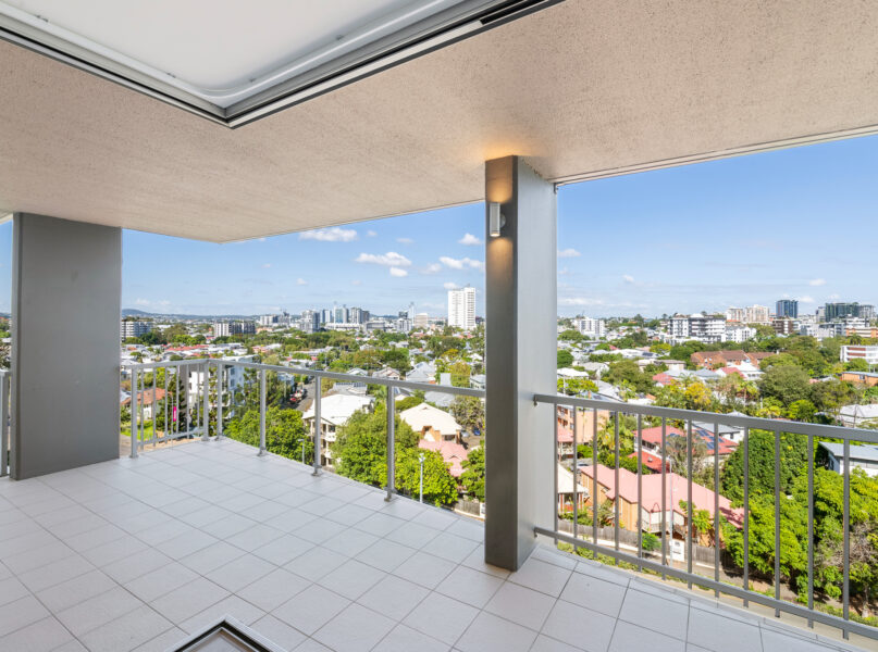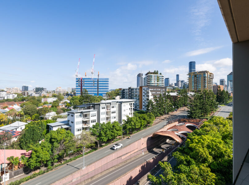 Perched on level seven, the apartment showcases panoramic views across Kangaroo Point, Woolloongabba, South Bank, and the dazzling Brisbane city skyline.