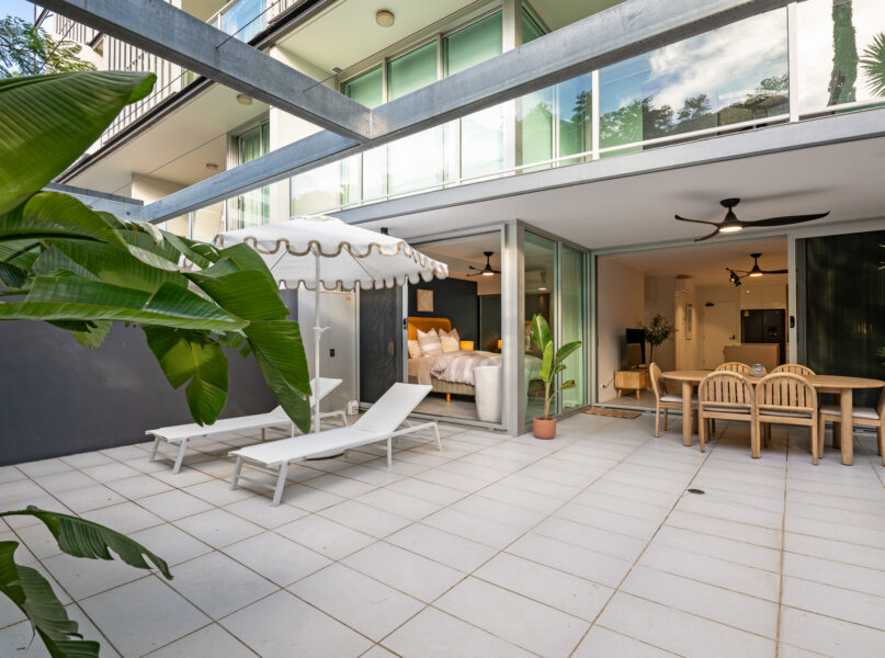 Positioned on the 1st floor, this fully furnished exquisite residence features an oversized courtyard that serves as the perfect space for entertaining guests or enjoying quiet evenings outdoors. As you enter, you’ll be immediately captivated by the elegant finishes and attention to detail throughout the apartment.