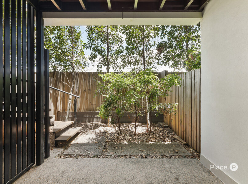 Downstairs, a fully-fenced courtyard features beautiful gardens. A linked secure dual tandem garage can also serve as a home office, gym or workshop. This level is complete with a laundry and an abundance of storage.