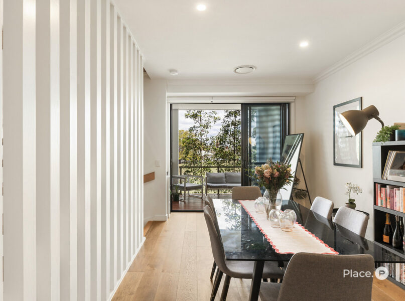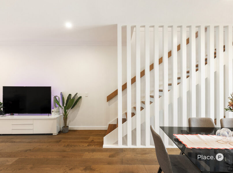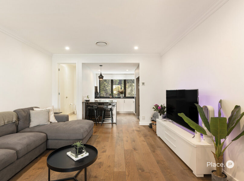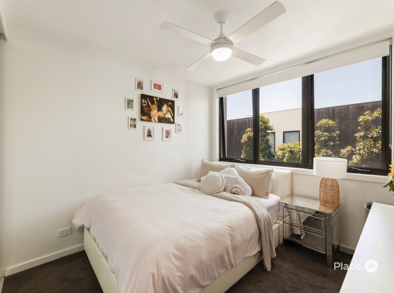On the property’s third level, an ensuited master bedroom is accompanied by a stylish main bathroom and two additional bedrooms; all three are fitted with built-in robes. The residence also includes reverse-cycle air-conditioning, ceiling fans, an instantaneous gas hot water system and security doors and screens. Fire- and sound-proofed walls between the townhome and its neighbours ensure privacy.