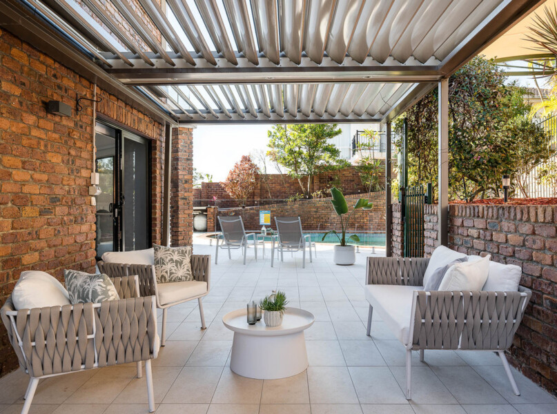 Experience tranquility in the sun-drenched pool area, enhanced by a soothing night-time ambiance.