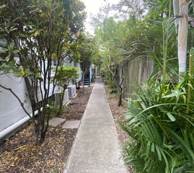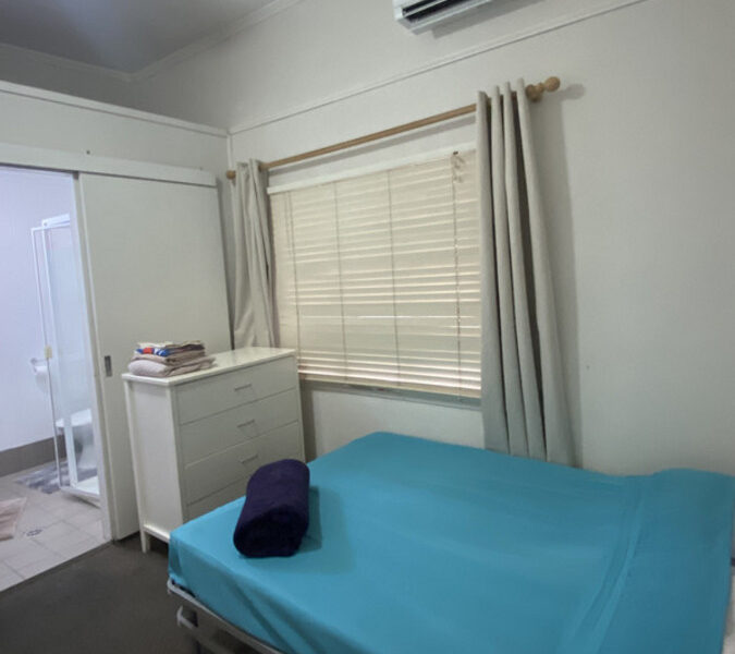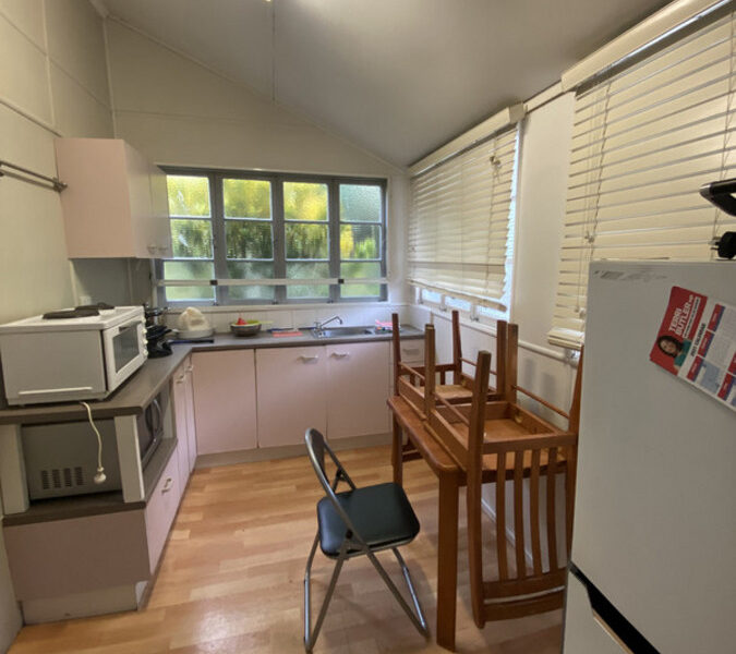 A self-contained furnished unit with a separate kitchen, bathroom, aircon, ceiling fans, coin-operated laundry, large covered outdoor common area and low-maintenance garden.