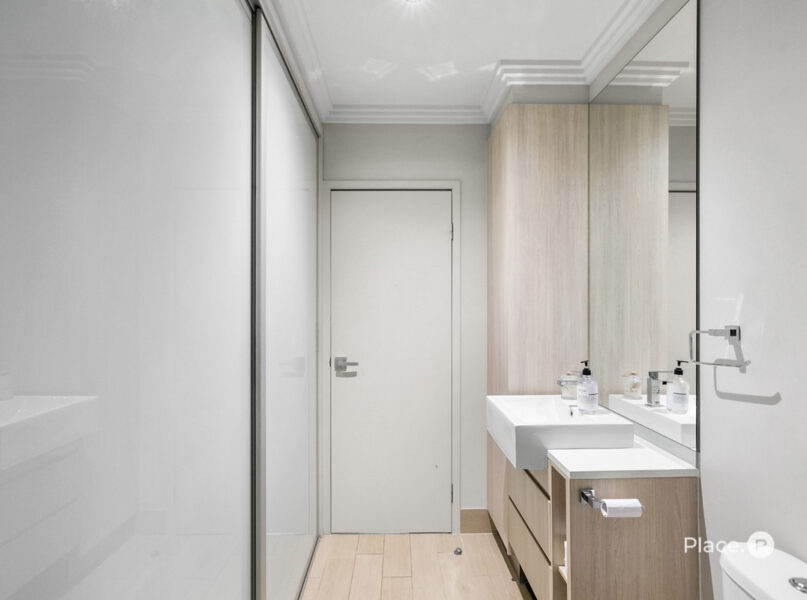 On the second level, two stylishly appointed bedrooms await, both serviced by their own modern ensuite and ceiling fans. The master bedroom includes a private balcony, air-conditioning and dual walk-in robes, while the second bedroom is complete with a built-in robe. Other premium features include a downstairs powder room and laundry, a single secure garage and open second car space.