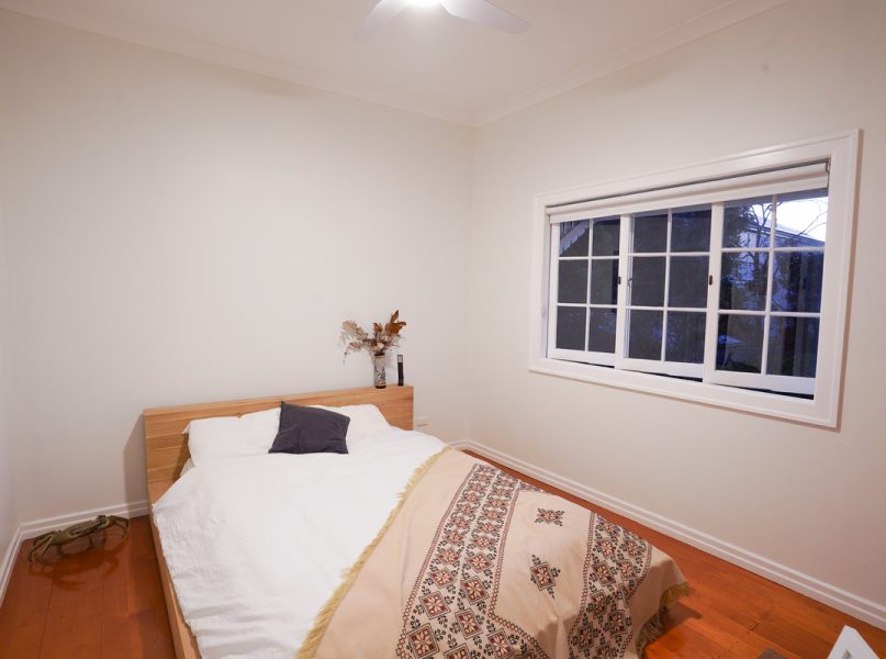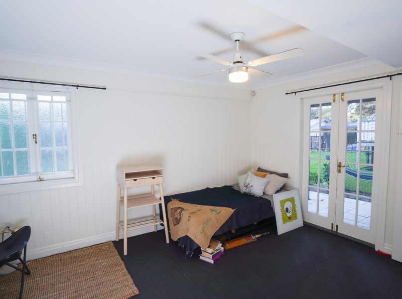 Delivering a functional arrangement for entertaining, the open living extends out through wooden doors to a rear deck. From here you can overlook the leafy green, low maintenance astro turf backyard and gym.