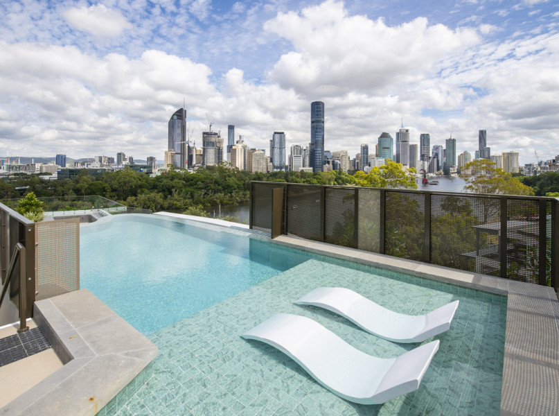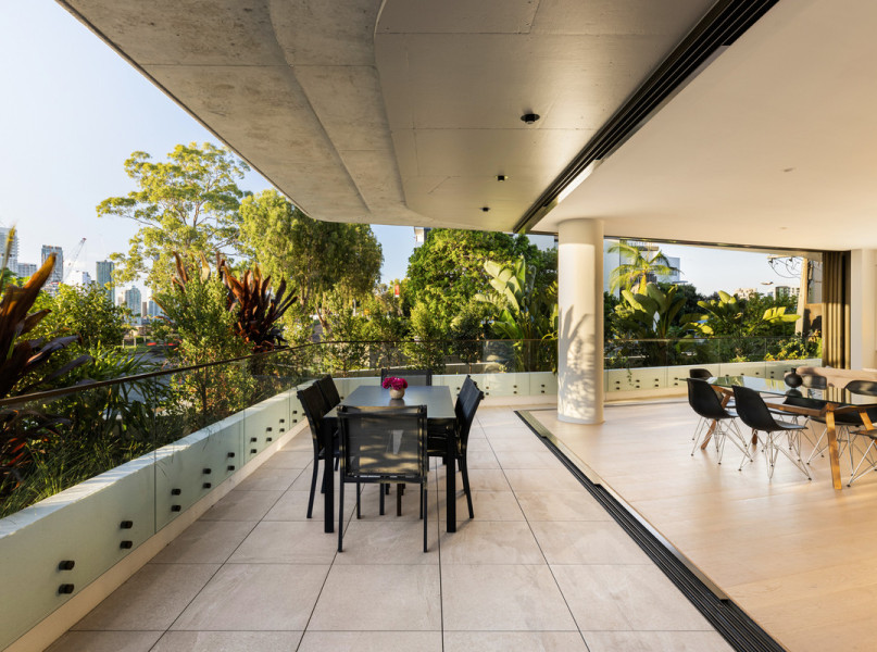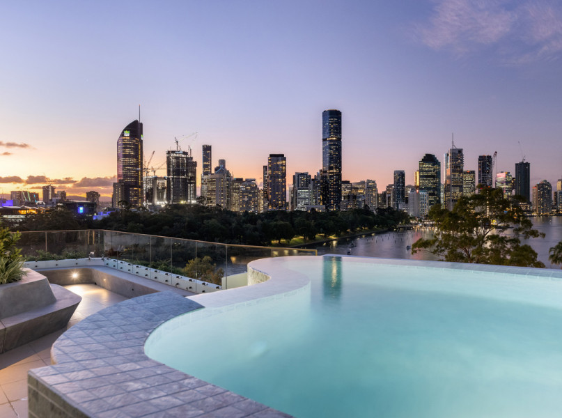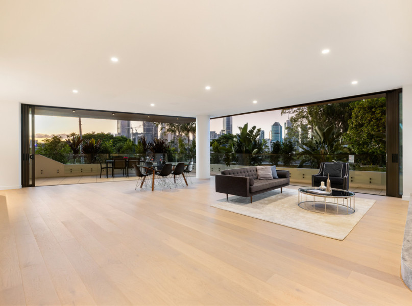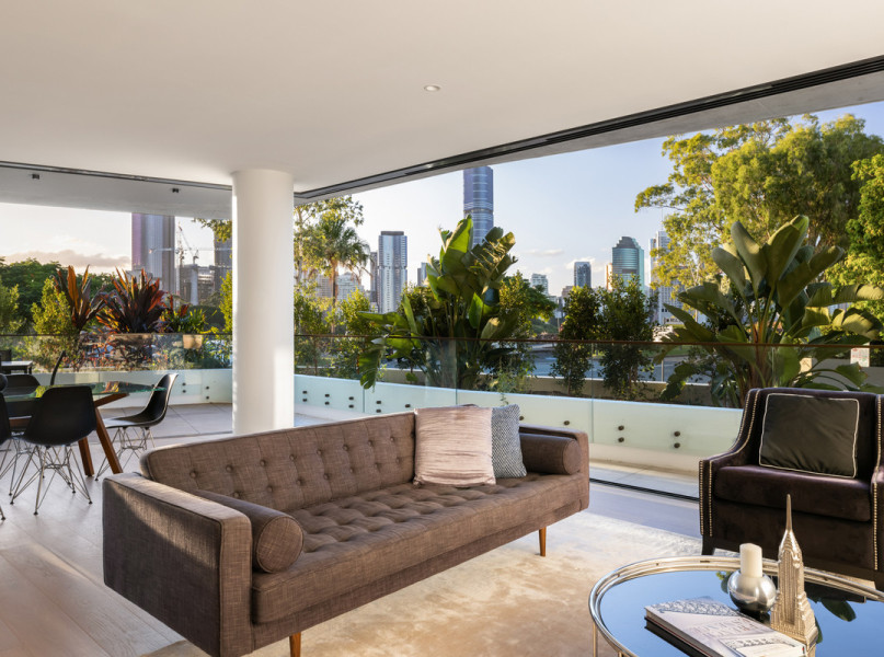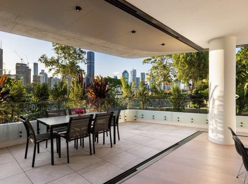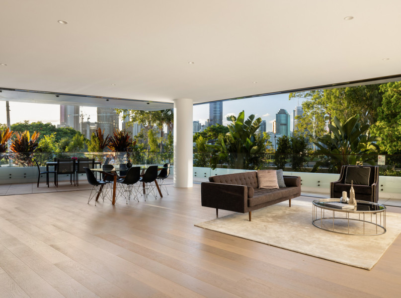 Bookended by the Story Bridge and South Bank Parklands, the property showcases mesmerising and panoramic views of the Botanical Gardens, the city’s iconic skyline and the soon-to-be-finished Queens Wharf.
