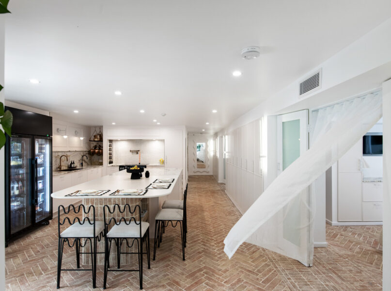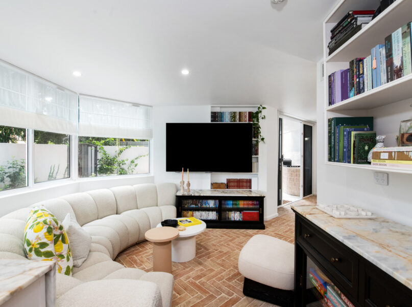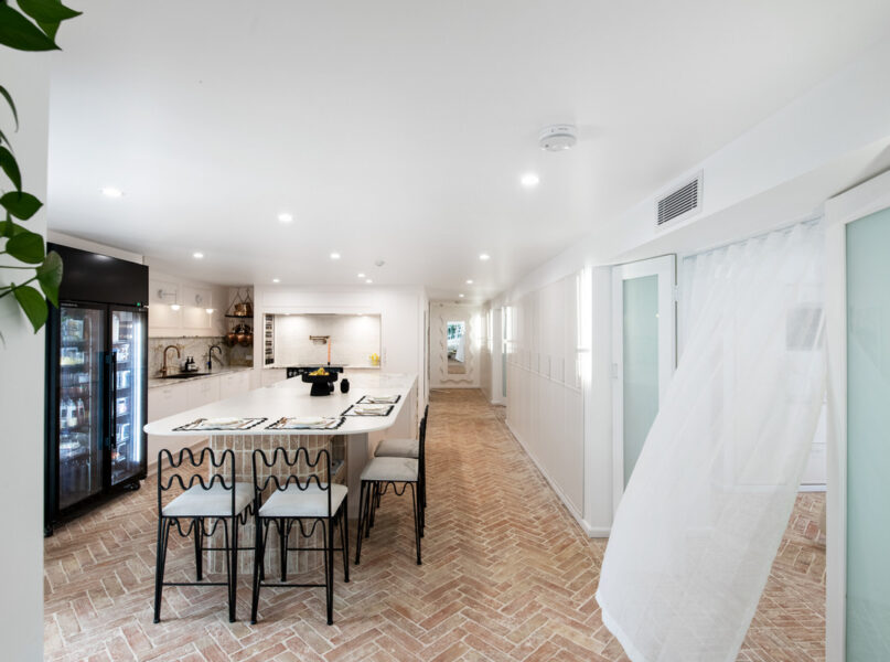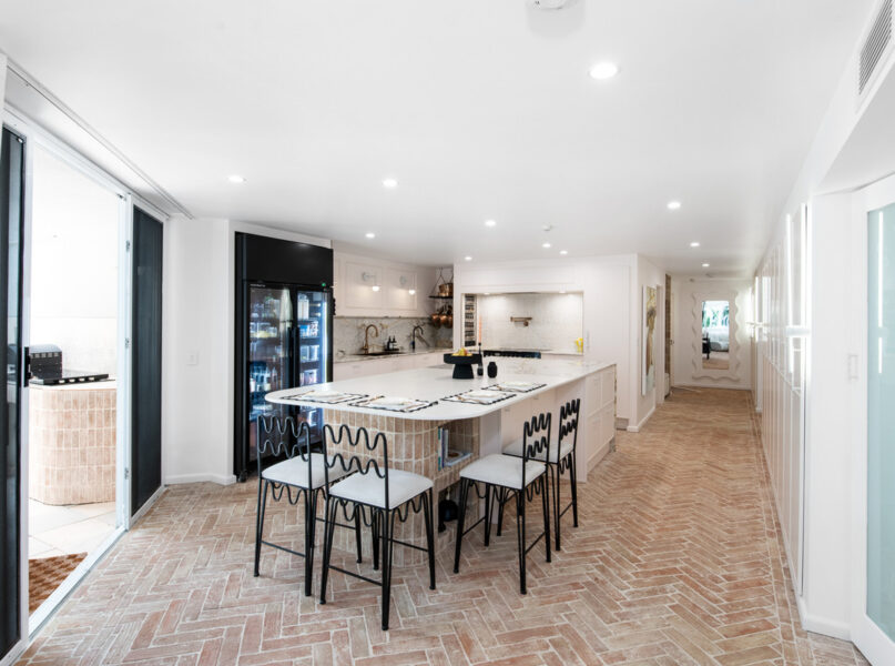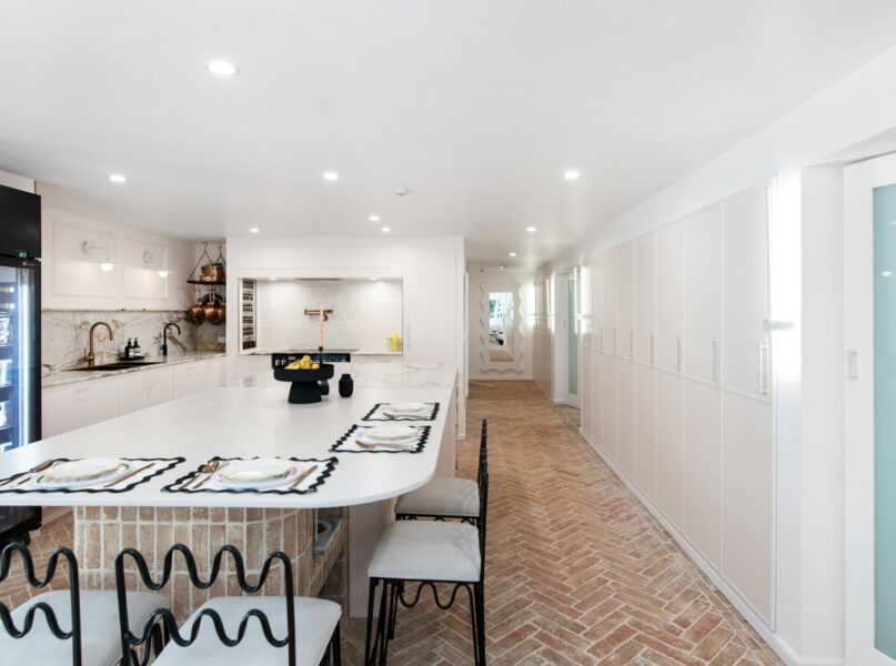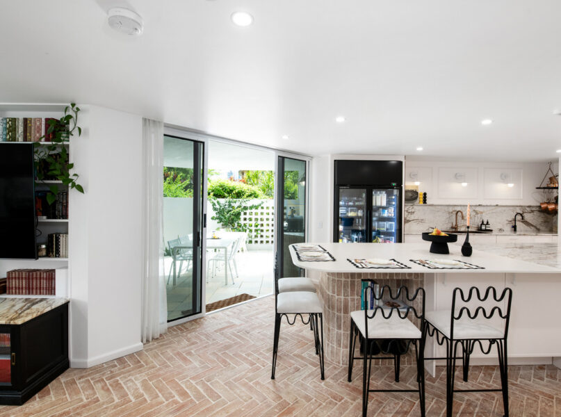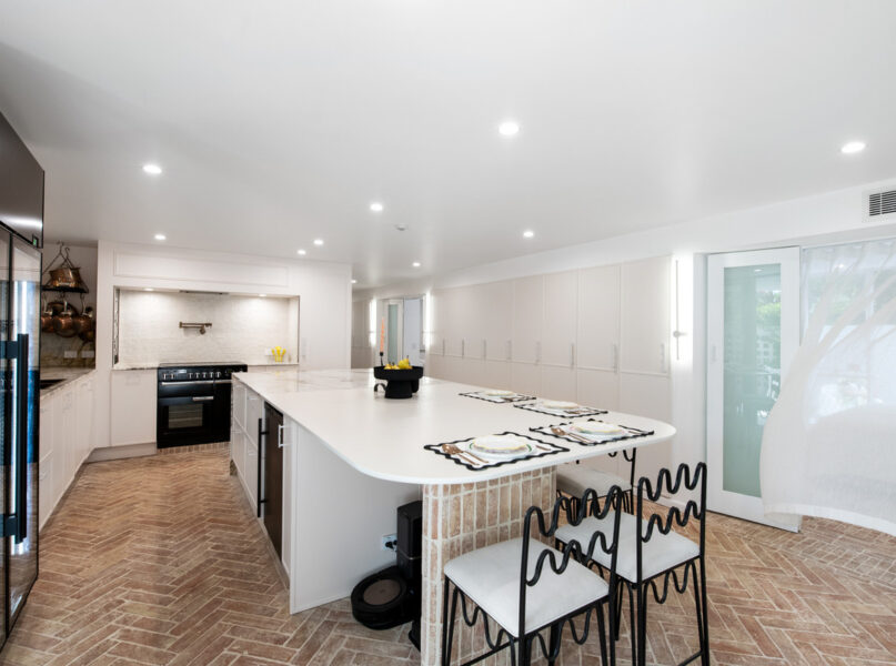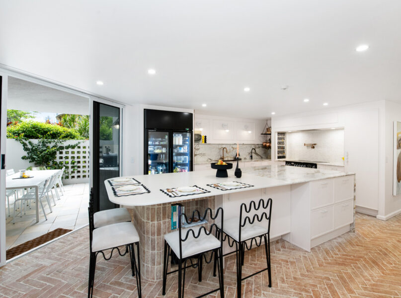 The home was created with indoor/outdoor seamless flow in mind. Inspired by the seller’s travels through Italy, particularly the Tuscany and the Cinque Terre regions. They wanted the space to feel warm and homely but with a modern, simple and light/ bright aesthetic. A place where you could have large family gatherings with the kitchen at the heart of the home.