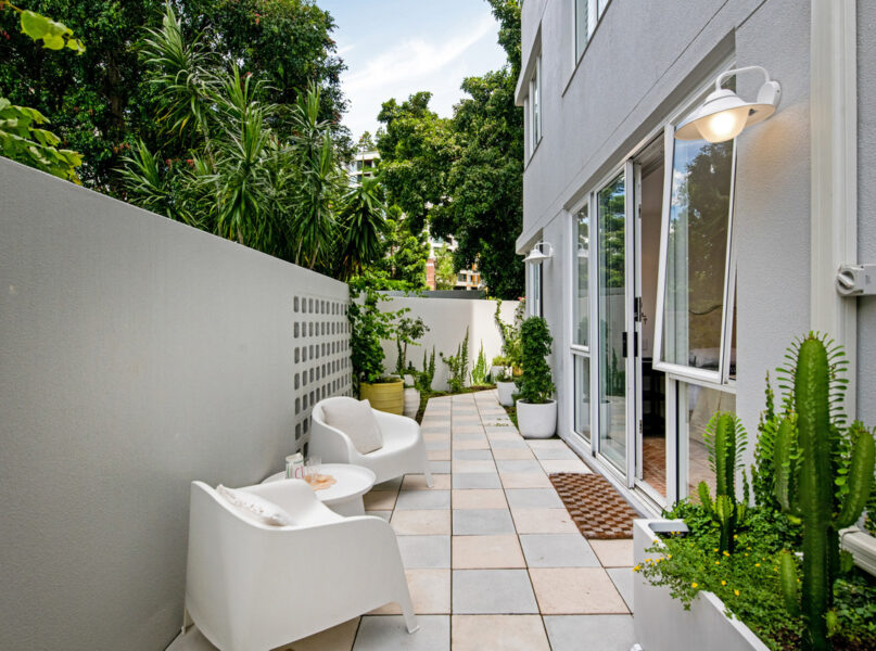 The massive courtyard is such a luxury in this inner-city location. They planted the European inspired garden with the idea that as much colour and greenery would cover the walls over time creating a private & serene space removed from the urbanity of the location.