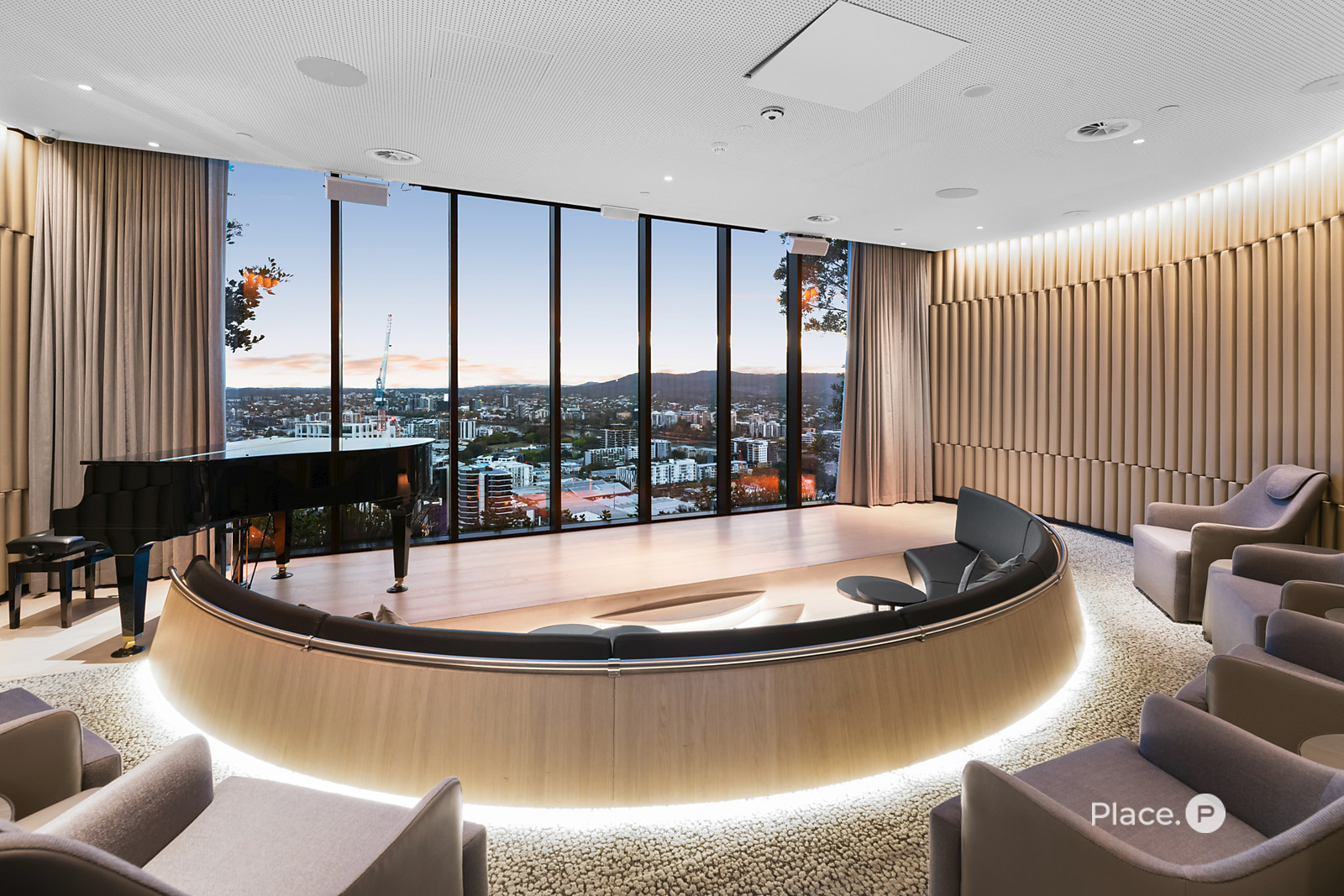 Elevating the experience further, the Level 31 Rooftop Club offers a heated 25-metre rooftop pool surrounded by sun lounges, a fully air-conditioned sky lounge with co-working spaces, a private dining room with a balcony and seating for ten, a private theatre room complete with a drop-down projector and baby grand piano, and multiple outdoor areas designed for entertaining, including a fire pit and barbecue facilities.