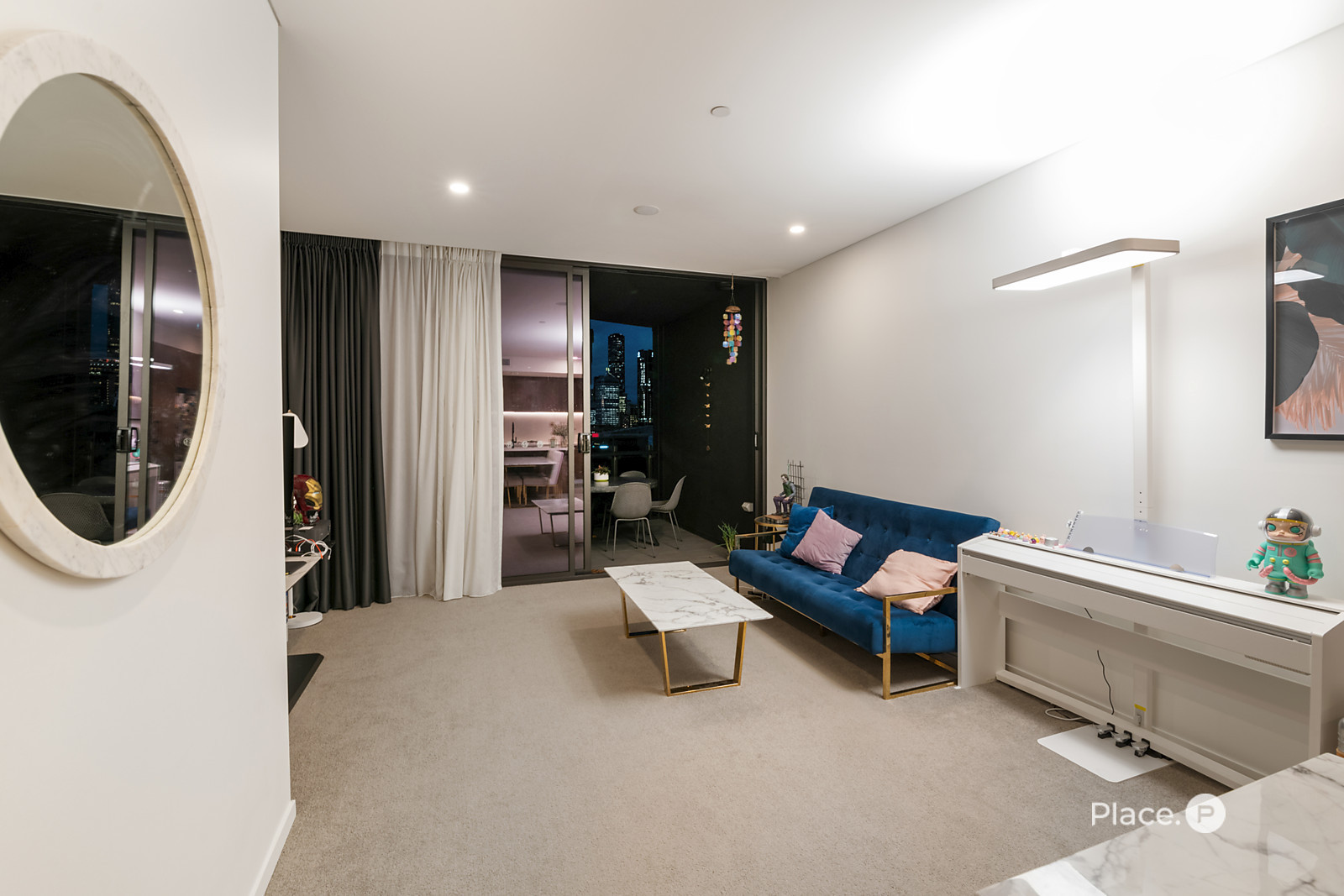 Thoughtfully finished throughout, the apartment boasts soaring 2.7-metre ceilings, full-height double-glazed windows, flowing curtains, ducted air-conditioning, and ceiling fans in all bedrooms. Secure intercom access and CCTV offer peace of mind, while a dedicated building concierge and on-site management team provide exceptional service and convenience. Located within the highly sought-after Brisbane State High School catchment, and set directly above the vibrant Fish Lane precinct, the best of Brisbane’s dining, art, and culture is quite literally on your doorstep.