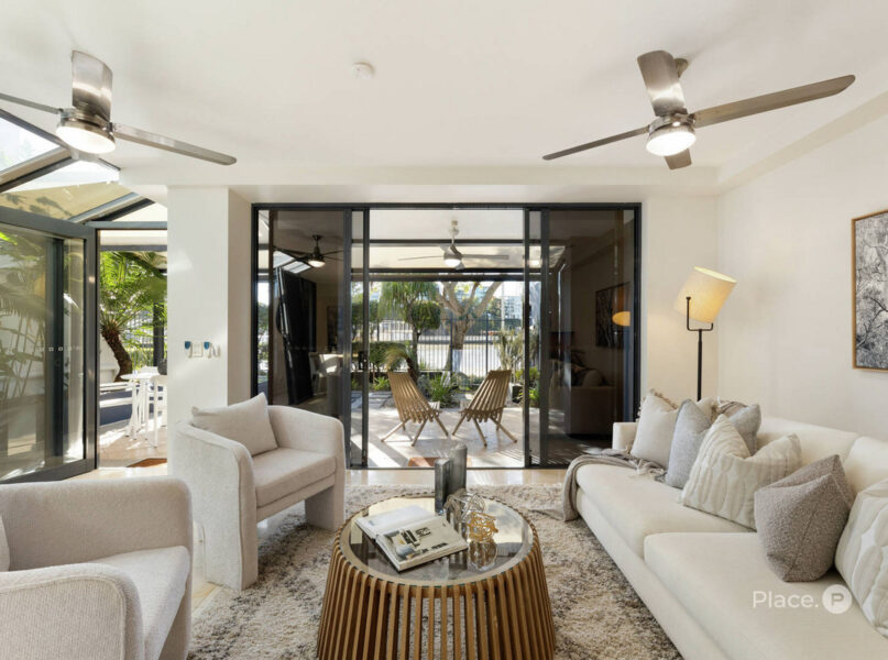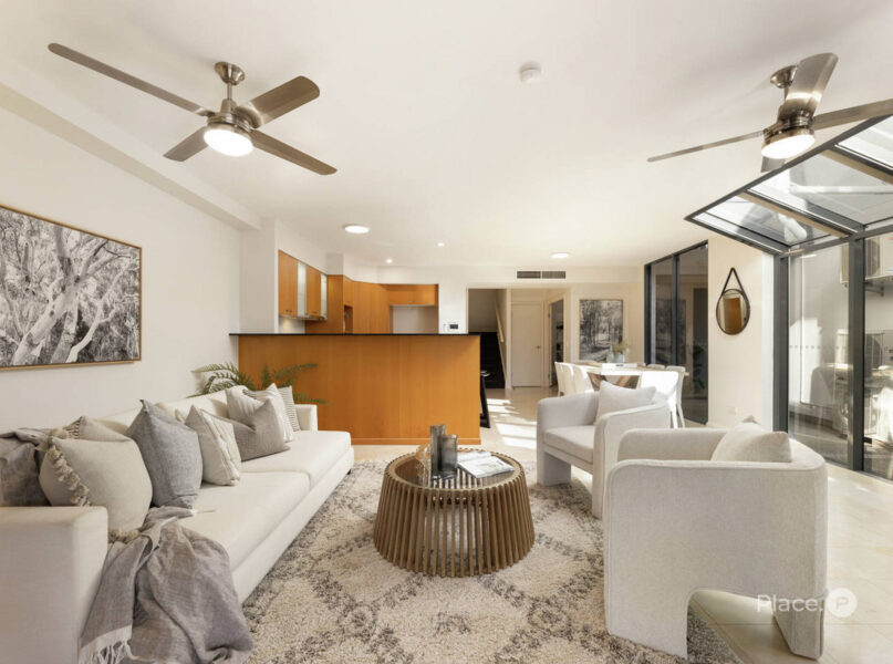 Complete with a ground-level powder room and a secure dual garage, the residence also includes an internal laundry, excellent storage, air-conditioning and ceiling fans. There is also the option to install a lift, if preferred. Use of the complex’s gym and lap pool promises an incredible lifestyle.