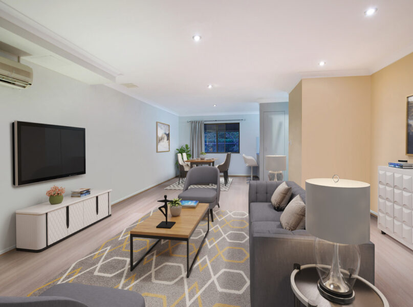 Classic in its design, the apartment showcases timber-look floors and a versatile neutral colour palette.