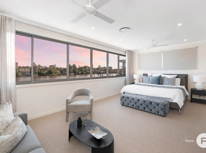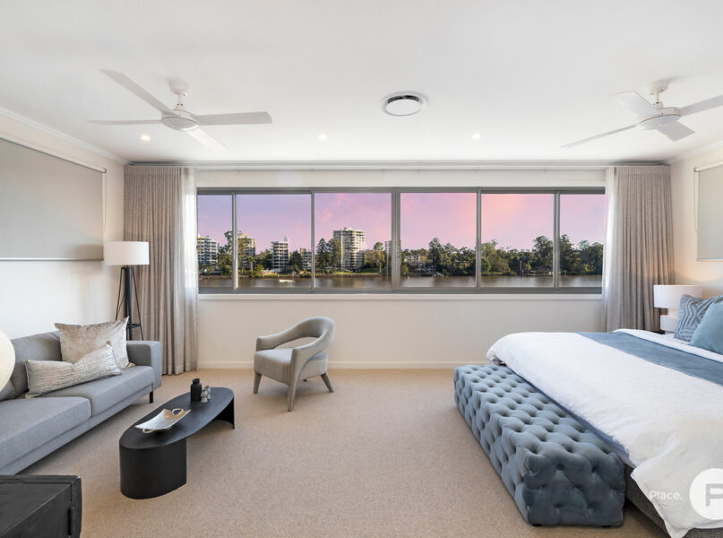 – Lavish master suite showcasing a walk-in robe and extraordinary river views