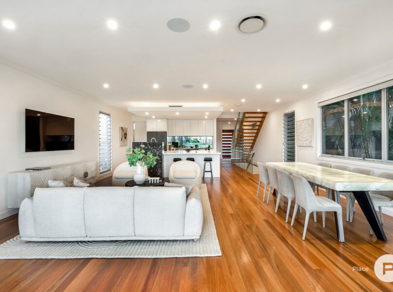 Only six kilometres from the heart of Brisbane’s CBD, this exceptional home is near the fashionable Montague Markets and West Village precincts. A slew of scenic riverwalks, city-bound bus stops, boutiques, cafes and restaurants are just streets away.
