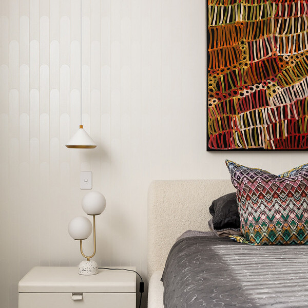 A well-appointed main bathroom services three additional bedrooms; each has a built-in robe and Greg Natale carpeted floors, while one opens out to a private balcony enjoying vistas of New Farm.