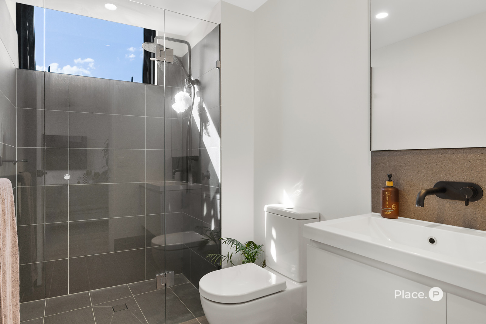 Both bedrooms are privately positioned, each with built-in robes and full-height glazing that captures the soft south-west light. The second bedroom’s signature curved window frames the view like a piece of architecture in itself — a detail that turns a quiet retreat into something truly memorable. The bathroom continues the theme of simplicity and style, with modern finishes and thoughtful functionality throughout.
