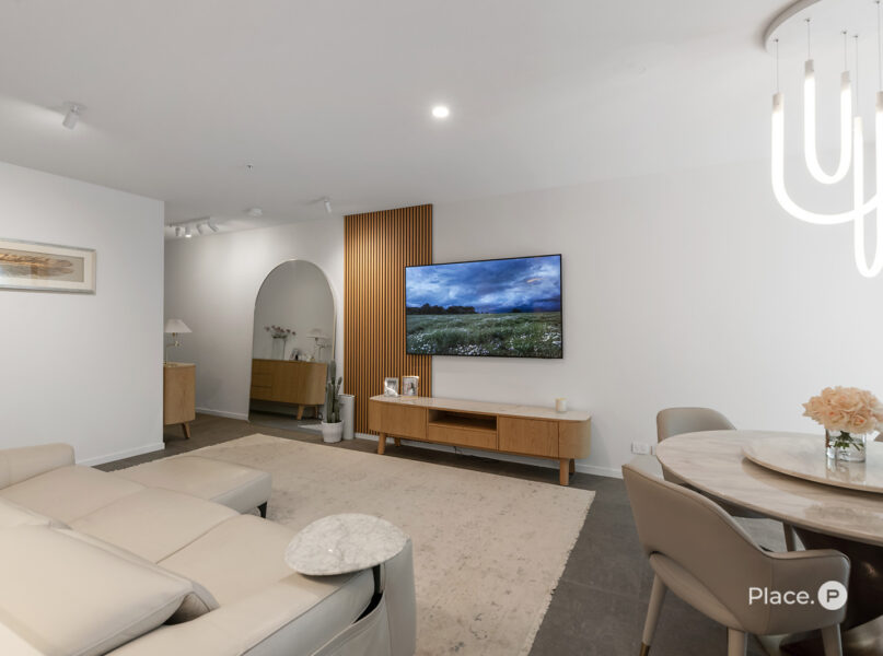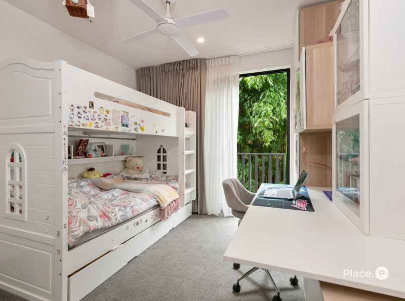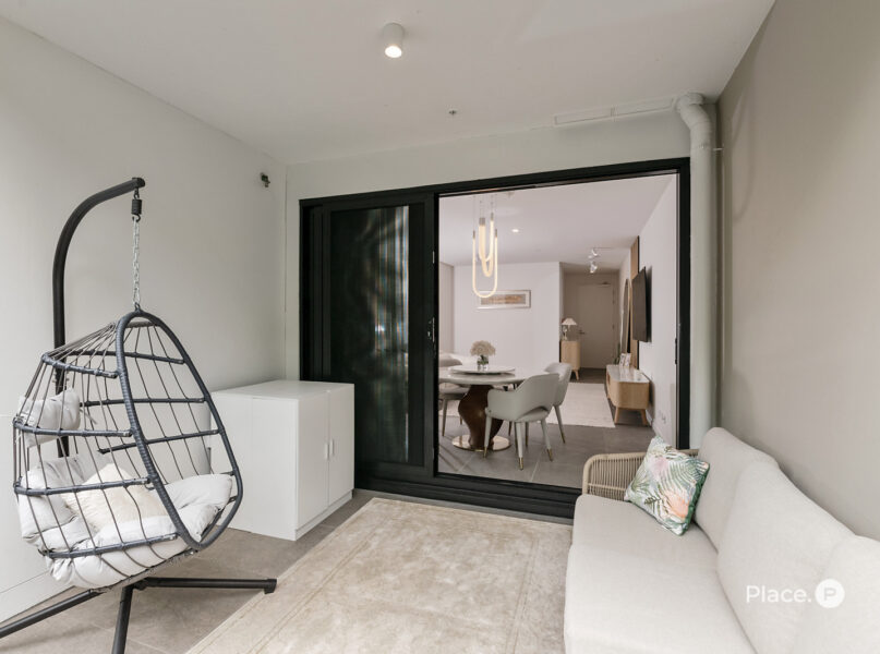 Every detail of the apartment has been designed for comfort and convenience. Ducted air conditioning, ceiling fans, and high-quality curtains ensure year-round comfort, while intelligent storage solutions maximize the apartment’s space. The apartment also includes secure side by side parking for two vehicles, a large storage cage, ample visitor parking, and dedicated EV charging stations.