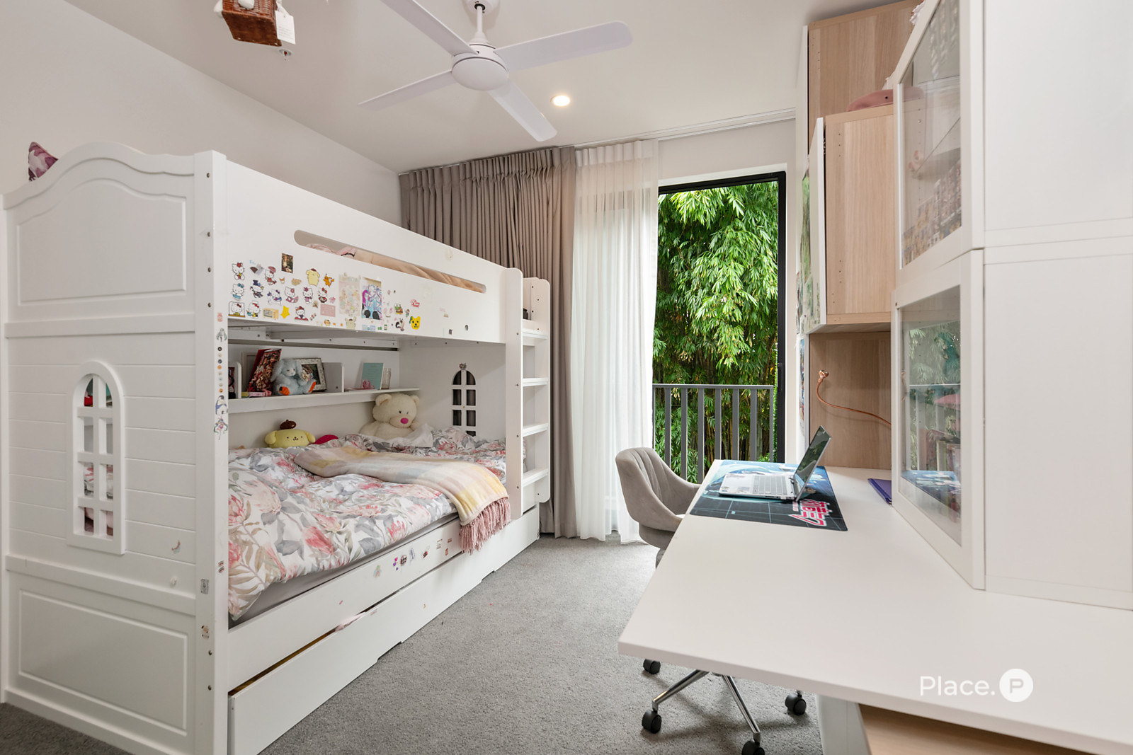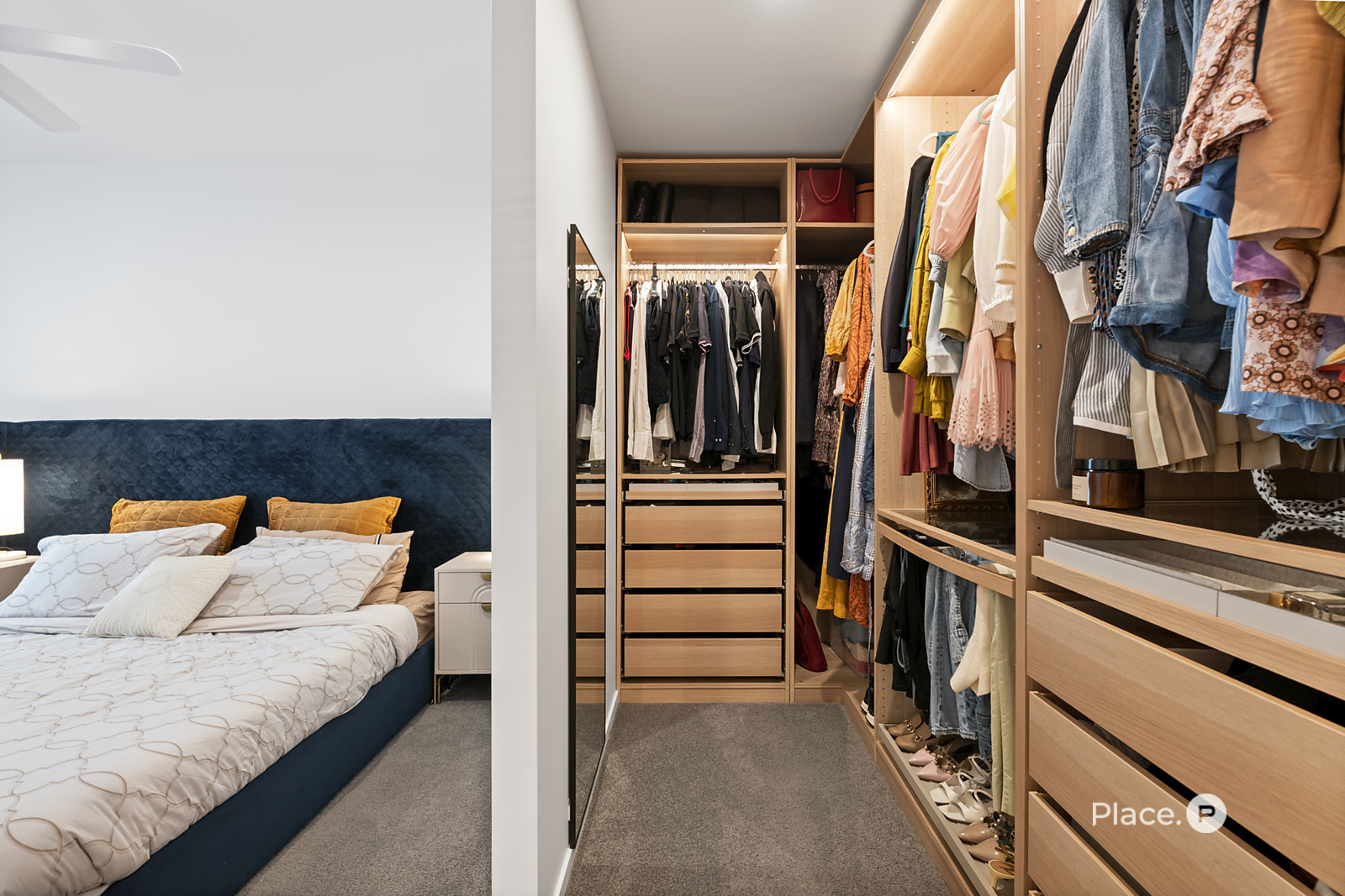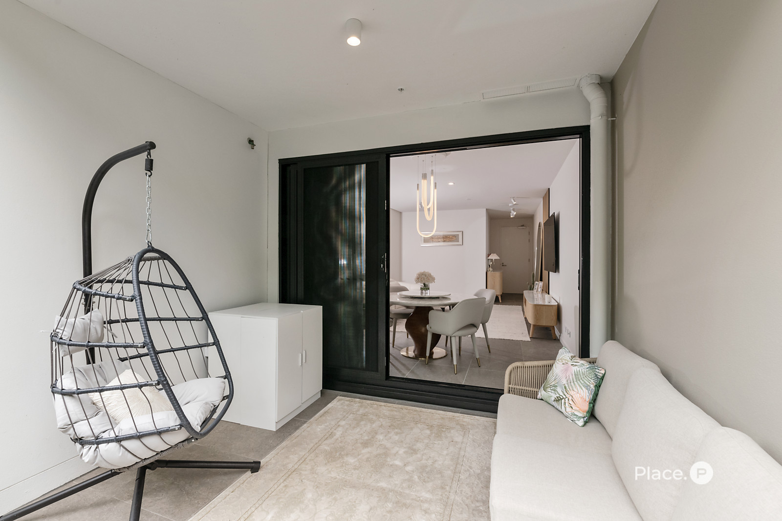 Every detail of the apartment has been designed for comfort and convenience. Ducted air conditioning, ceiling fans, and high-quality curtains ensure year-round comfort, while intelligent storage solutions maximize the apartment’s space. The apartment also includes secure side by side parking for two vehicles, a large storage cage, ample visitor parking, and dedicated EV charging stations.