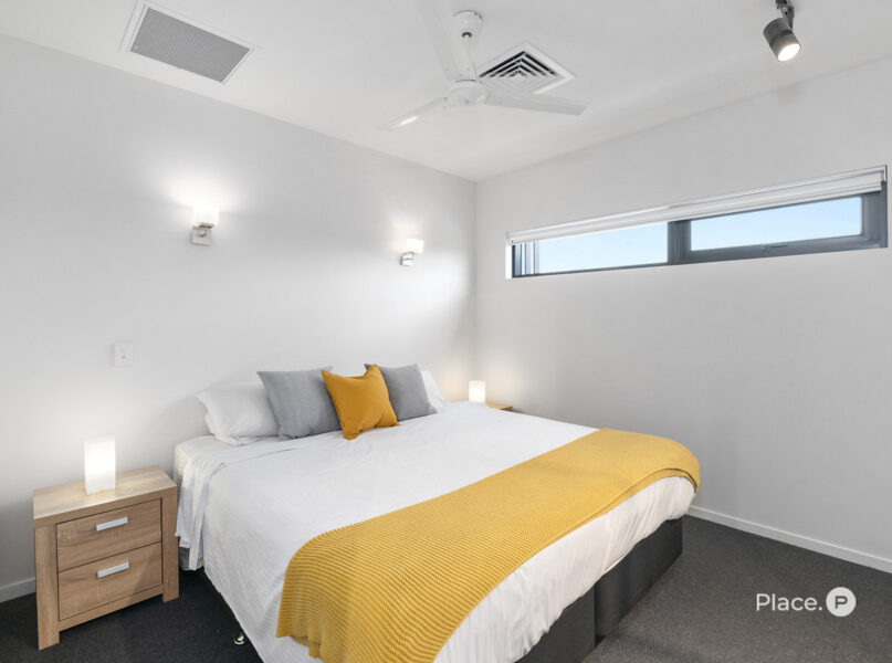 Bathed in natural light, the property centres around a generous open-plan living and dining area that seamlessly connects to a covered balcony. Here, gather loved ones for a barbecue, share a romantic al fresco meal or simply admire the stunning Mount Coot-Tha views.