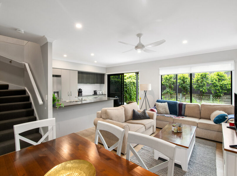 Designed with a tasteful contemporary aesthetic, the townhome showcases attractive timber, tiled and premium carpeted floors. Plenty of glass and a versatile neutral colour palette also creates a beautiful setting with enduring appeal.