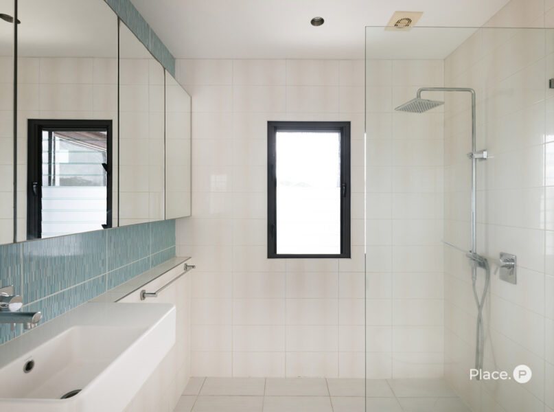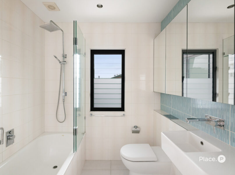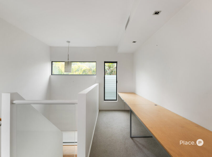 A functional study nook boasts an integrated desk, while a sizeable second bedroom has a built-in robe and is accompanied by a well-appointed main bathroom. Linked to the middle-level entertainers’ terrace, a third or guest bedroom featuring its own built-in robe is downstairs.