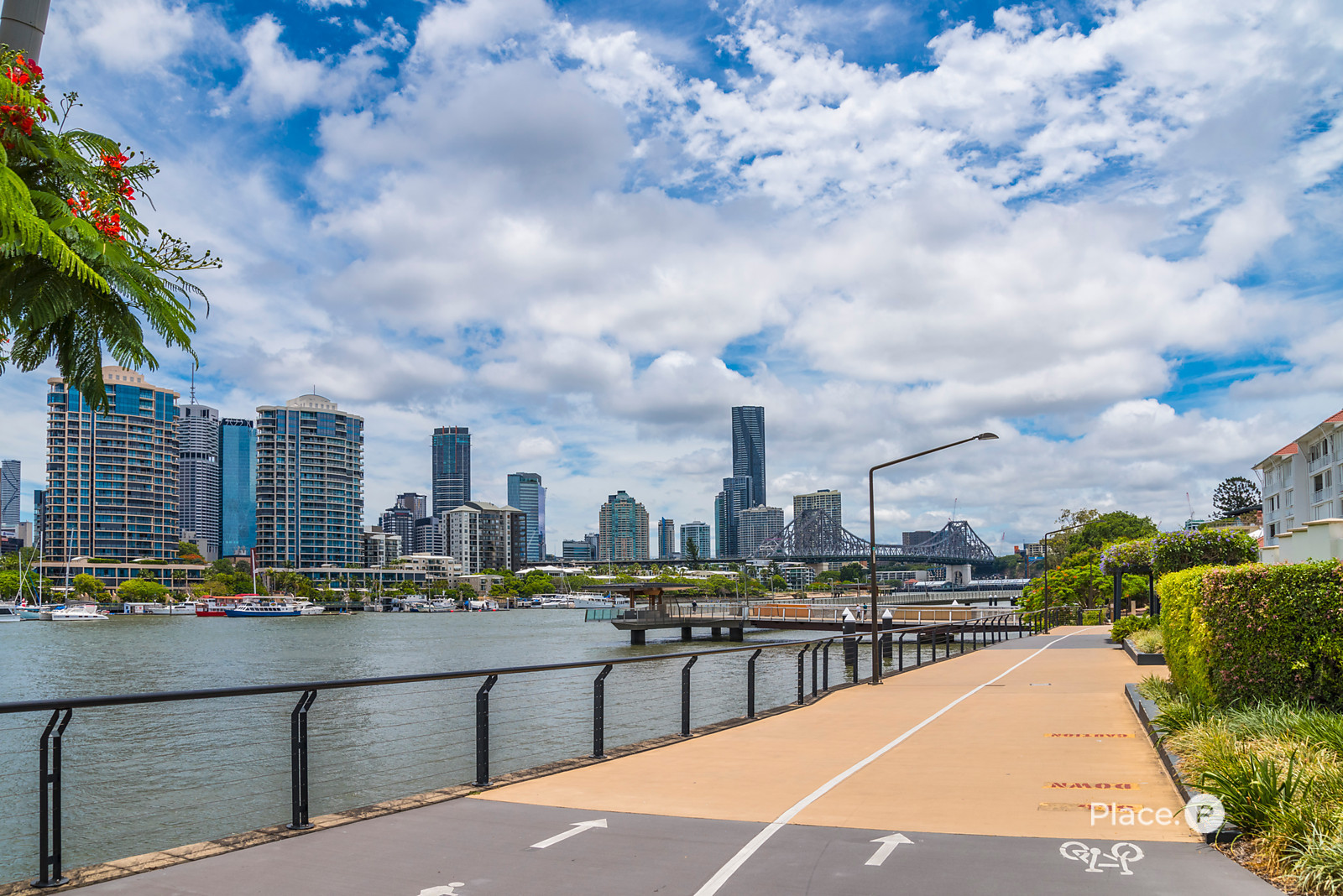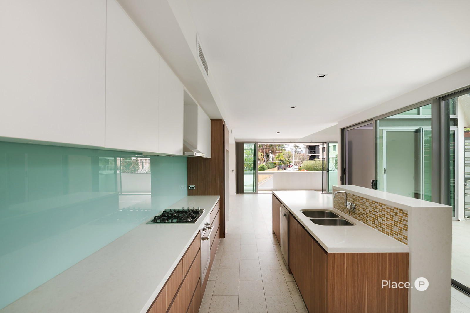 Serving as the centrepiece of the middle level, an immaculate modern kitchen displays stone benchtops, quality appliances and ample cupboard storage. Additionally, a wide array of acclaimed restaurants, cafes and bars are essentially right on your doorstep. Prepare a delicious meal at home or discover New Farm’s renowned dining scene with ease – the choice is yours.