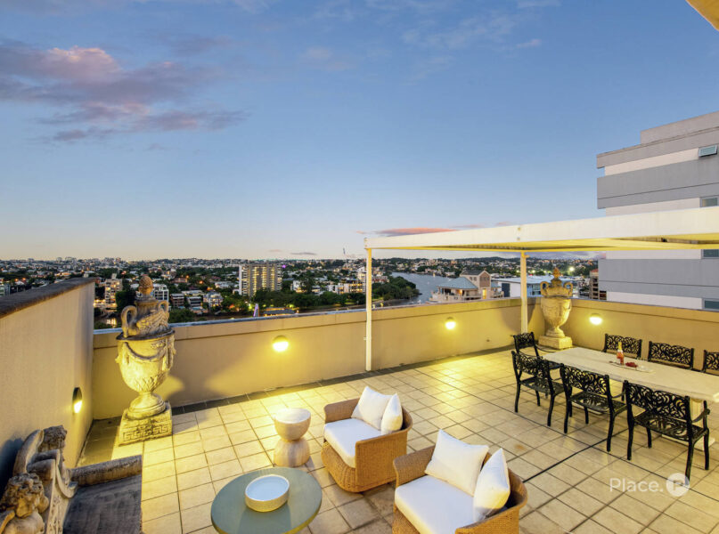 – Expansive 360° views of Brisbane River and city skyline from massive 251sqm outdoor space
