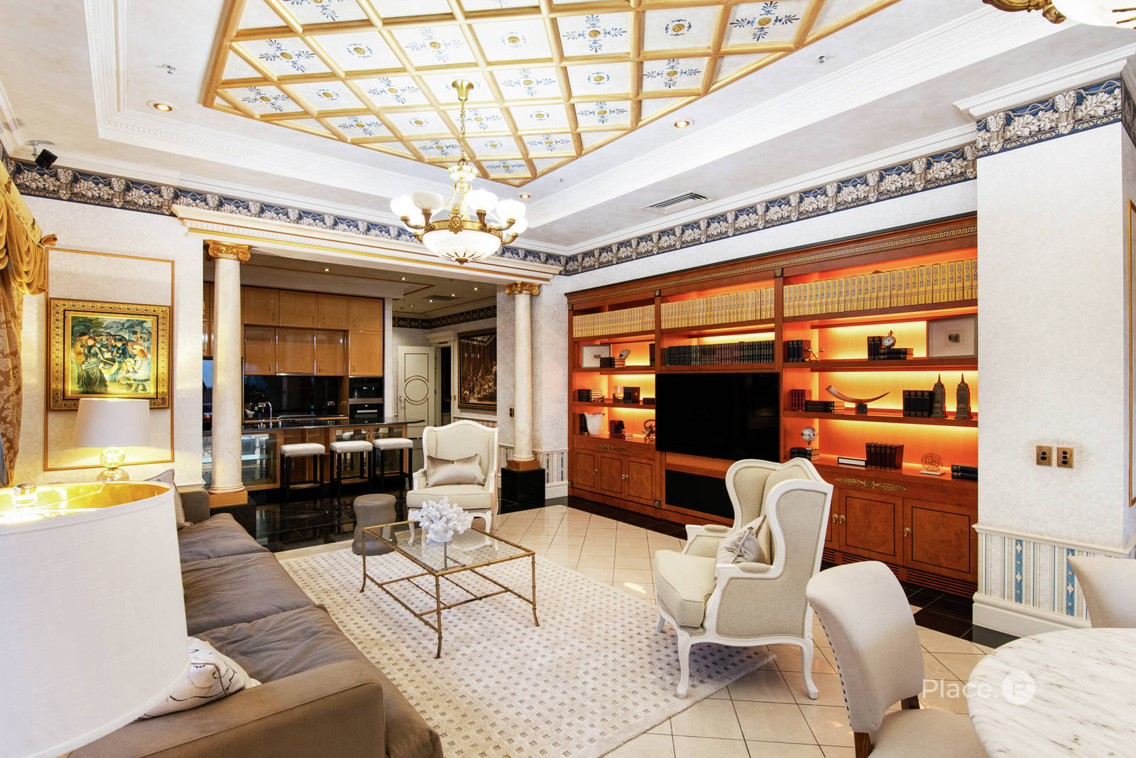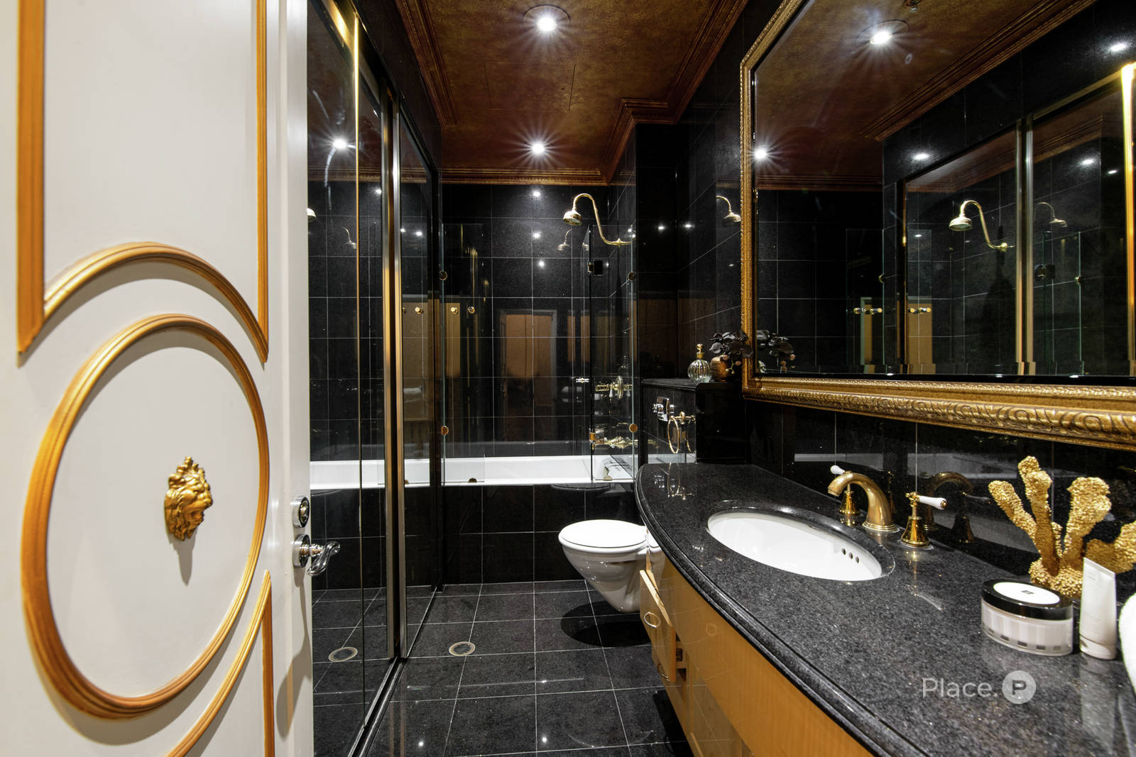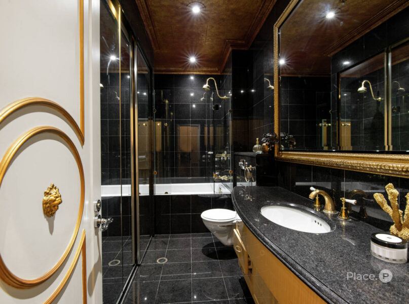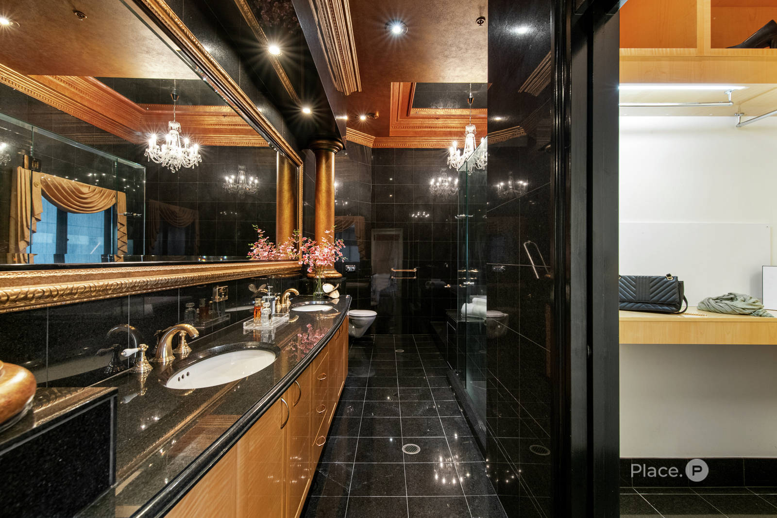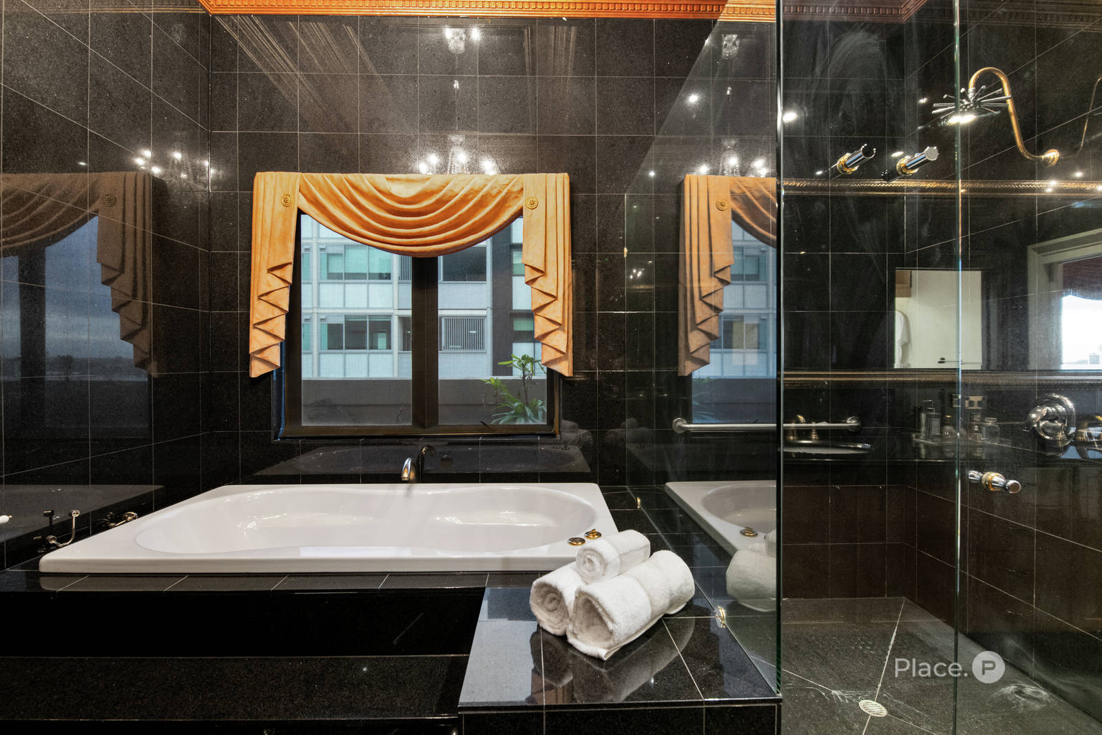 Celebrating classic grandeur, both apartments feature lofty coffered ceilings, dazzling chandeliers, parquetry timber floors, ornate cornices, and integrated joinery. Elegant tiled floors and expansive glass panels highlight the stunning vistas, ensuring a luxurious living experience.