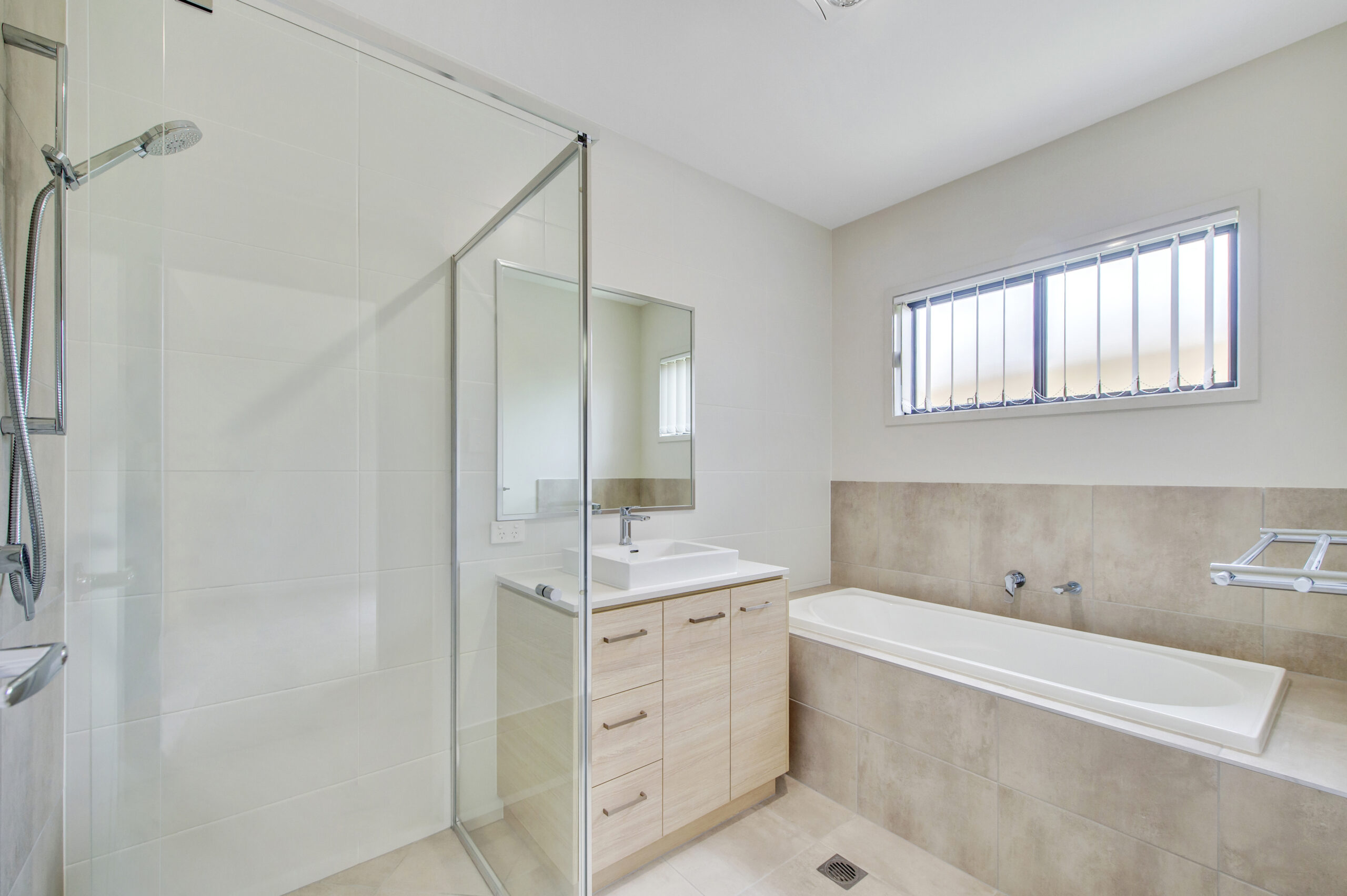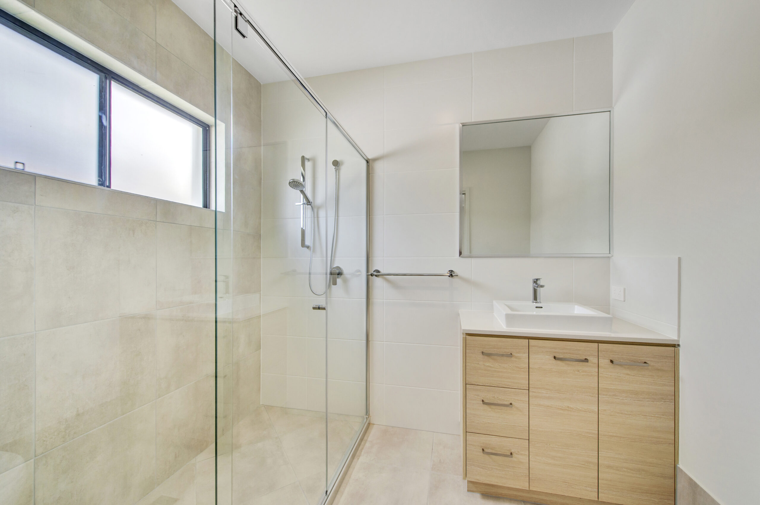 Stylish ensuite with high-end finishes and a calming neutral palette