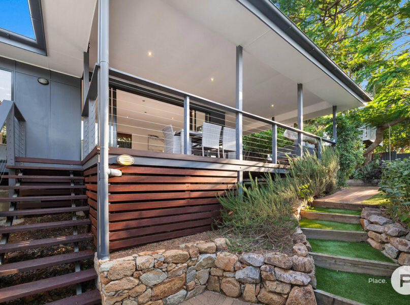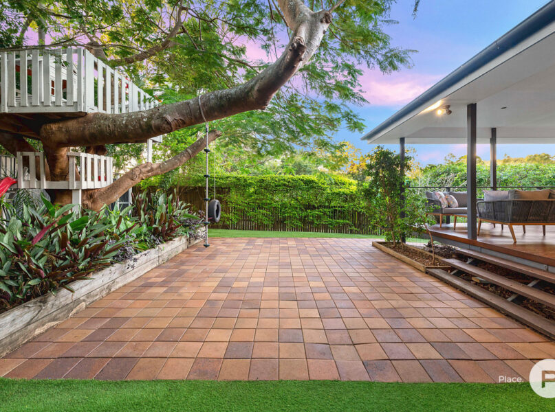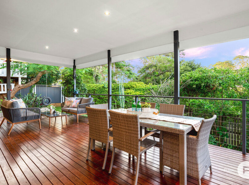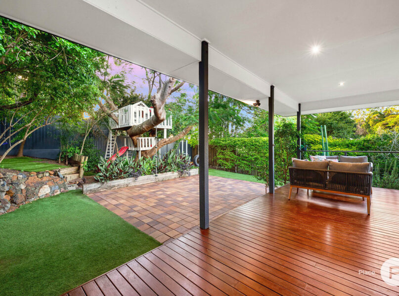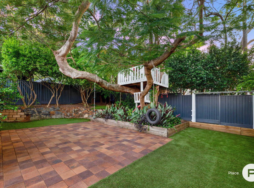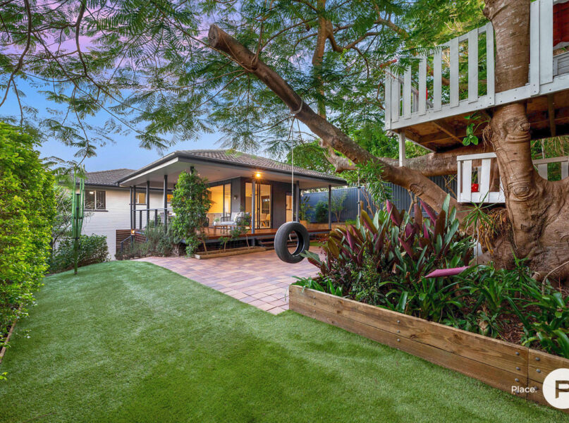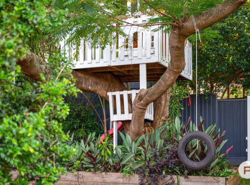 · The main focal point of the yard however is undoubtedly the beautiful large established poinciana tree. This is further showcased with a unique double storey children’s treehouse with stunning views over the nearby bushland and valley