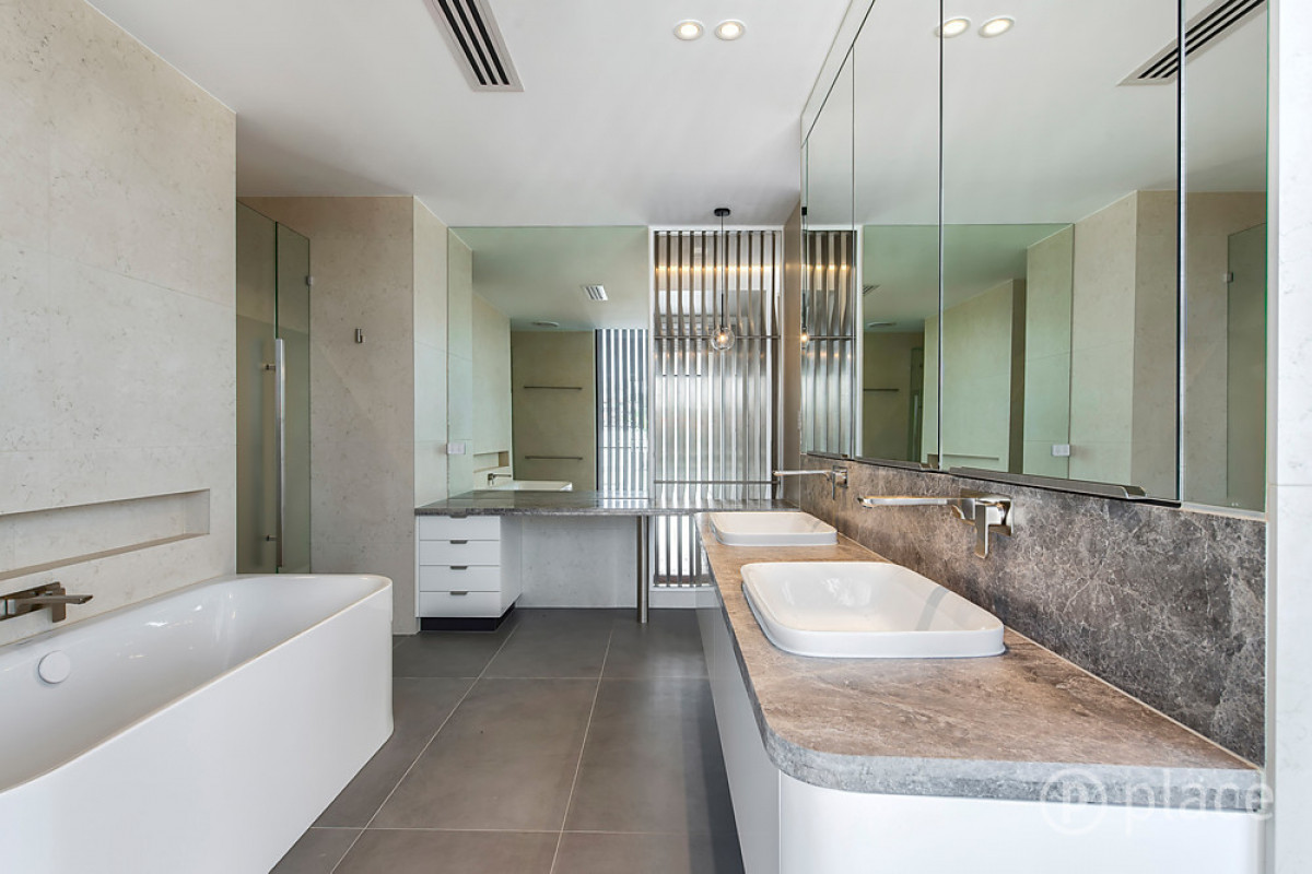 The master bedroom, positioned with separation in mind in its own wing of the residence, has a walk through robe plus ensuite with marble, double basins, bath and separate shower and toilet. Enjoy the evening sunset with views of the city from the master bedroom.
