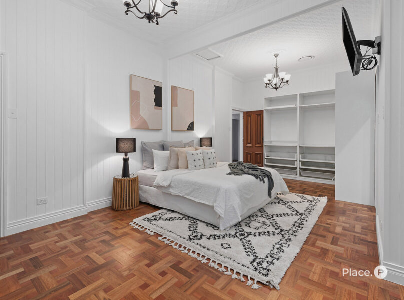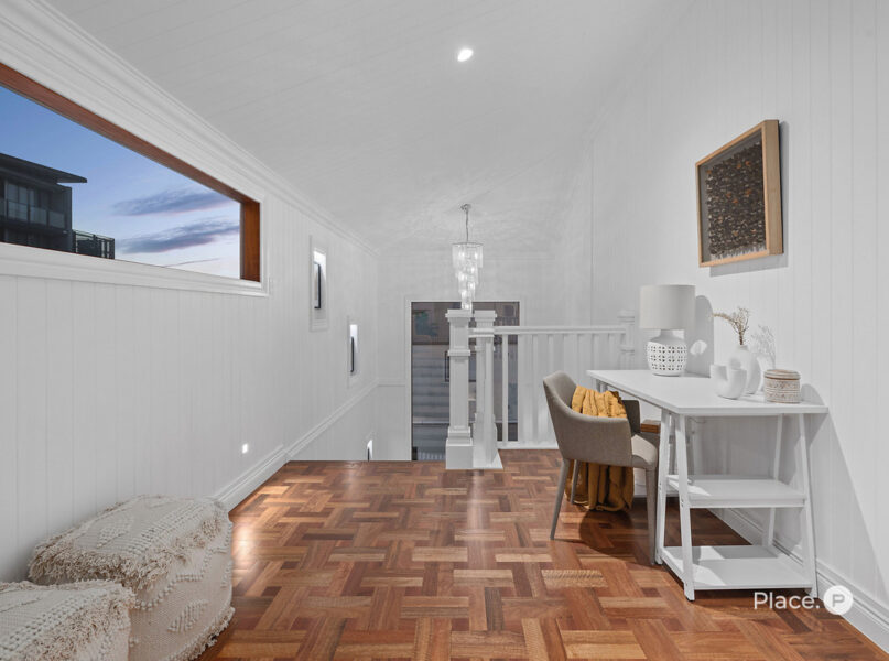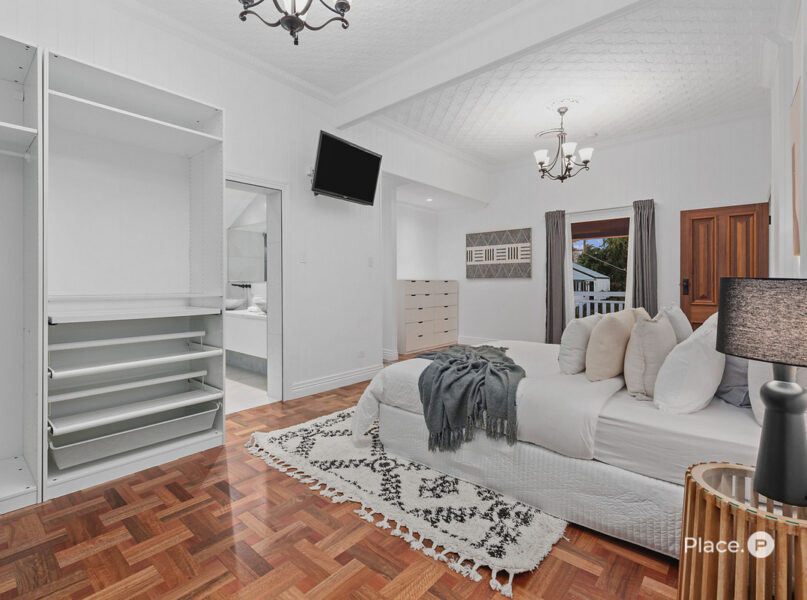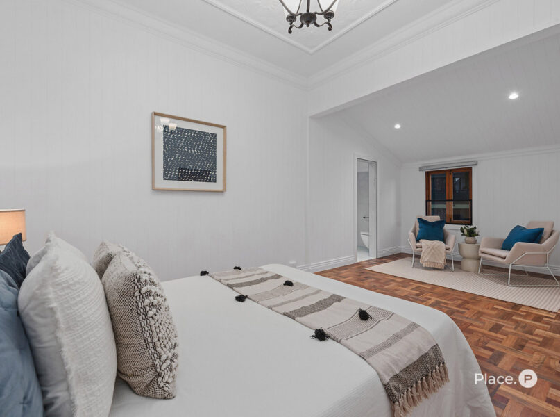 Ascending the bespoke timber staircase to the upper level, an oversize bay window captures the picture perfect sunsets. The custom parquetry flooring was expertly installed by an older craftsman, these work well with the original restored pressed metal ceilings. The generous master bedroom has a sumptuous ensuite with marble tiles and quality fixtures. Bedrooms three and four both have ensuites with floor to ceiling marble tiling and quality fixtures. The front verandah has timber inlay ceilings, the perfect space to entertain with the direct north/east aspect taking in the CBD views and breezes all year round.