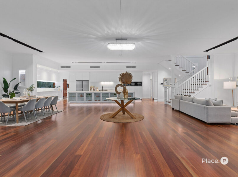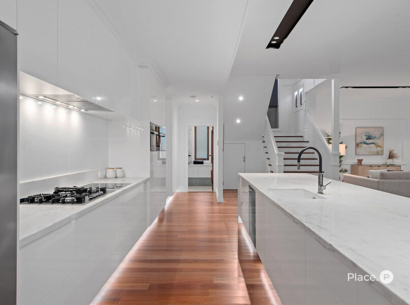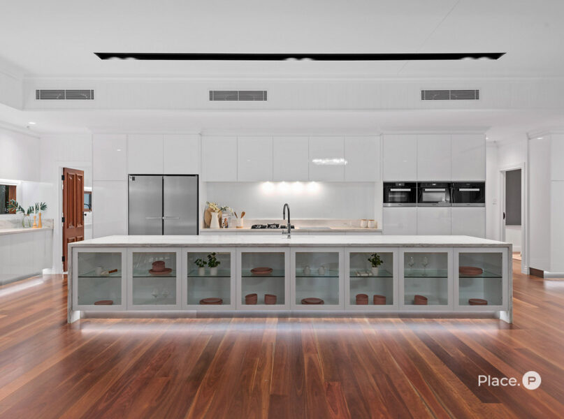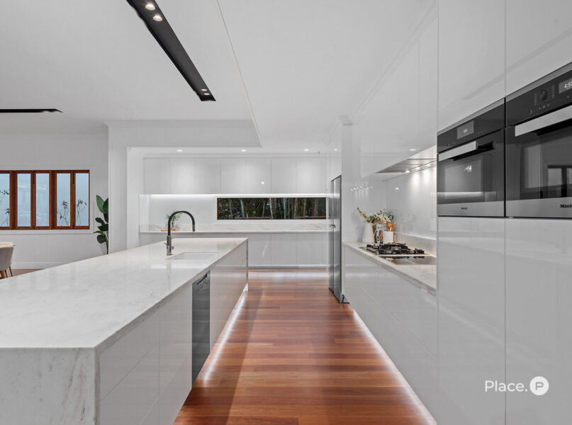 As soon as you enter you are welcomed by the black and white spanish tiles and double door entry with custom leadlight panels. The expansive open plan living area has 3.2 metre ceilings, ironbark hardwood flooring features throughout. The entertainers kitchen is a showpiece with a 5 metre long marble island bench and 2 pac cabinetry. Premium Miele appliances have been used, including gas and induction cooktops, dual ovens and a steamer. There is a generous amount of concealed storage spaces including a walk-in pantry. The laundry has stone benchtops, a Miele washer and dryer with a walk-in linen press. This level has a guest bedroom with walk-in robe and lavish ensuite.