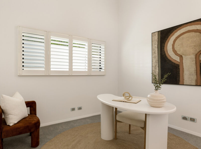 On a lower split level, another lounge area is accompanied by a dedicated office. Looking out to the swimming pool, an ensuited master bedroom has a walk-in robe. There is also a well-appointed main bathroom, plus a sizeable second bedroom with a built-in robe.