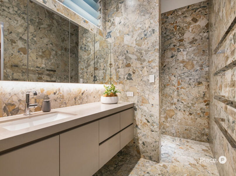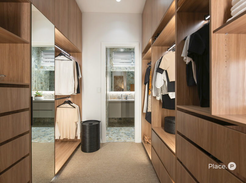 Uniquely, the master suite, plus two others and an office are located on the entry level of the home. The opulent master suite includes a custom walk-in robe and luxe ensuite, while additional bedrooms are generous in scale and thoughtfully zoned for privacy.