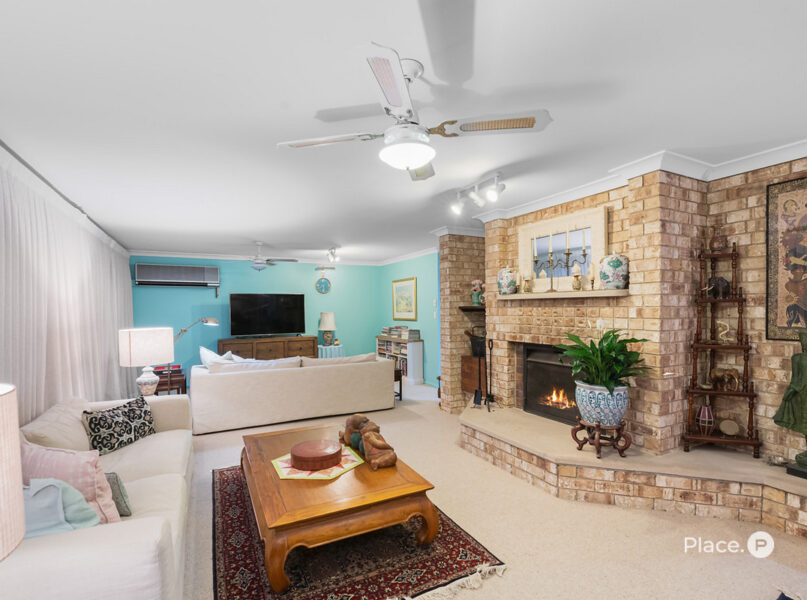 Flowing from a grand double-door entry, a spacious open-plan living and dining area feels truly welcoming. There is also an adjoining lounge room with a fireplace, as well as a generous kitchen displaying a breakfast bar, stainless-steel appliances and more than ample cupboard storage.