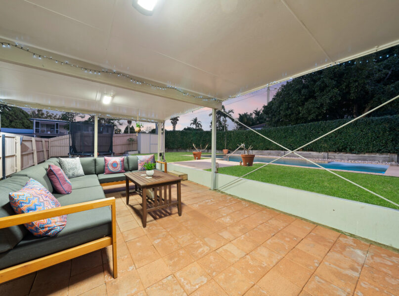 – Large undercover patio with roll down blinds overlooking the modern in-ground pool