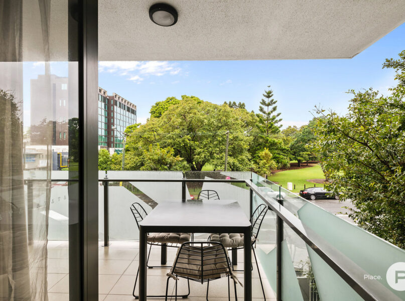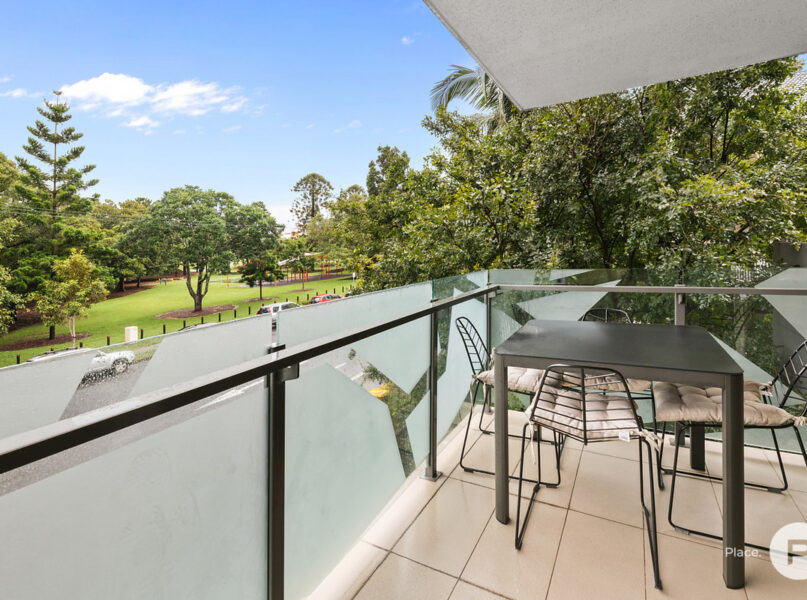 Step outside to the charming courtyard looking over the leafy Musgrave Park, where an evening wine or morning coffee will never be far away. This breezy spot also captures city glimpses. Meanwhile, the master bedroom is well-sized, featuring mirrored built-in robes and positioned only footsteps away from the main bathroom.