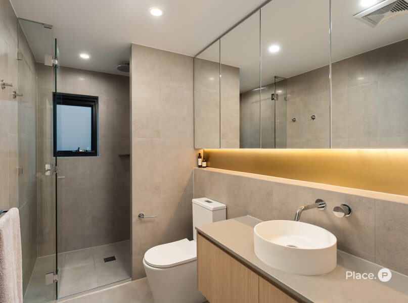 Stepping inside the building from its premium lobby entry, direct lift access will transport you upstairs to a private lobby leading into an airy open-plan living and dining area and an adjoining modern kitchen with a breakfast bar.