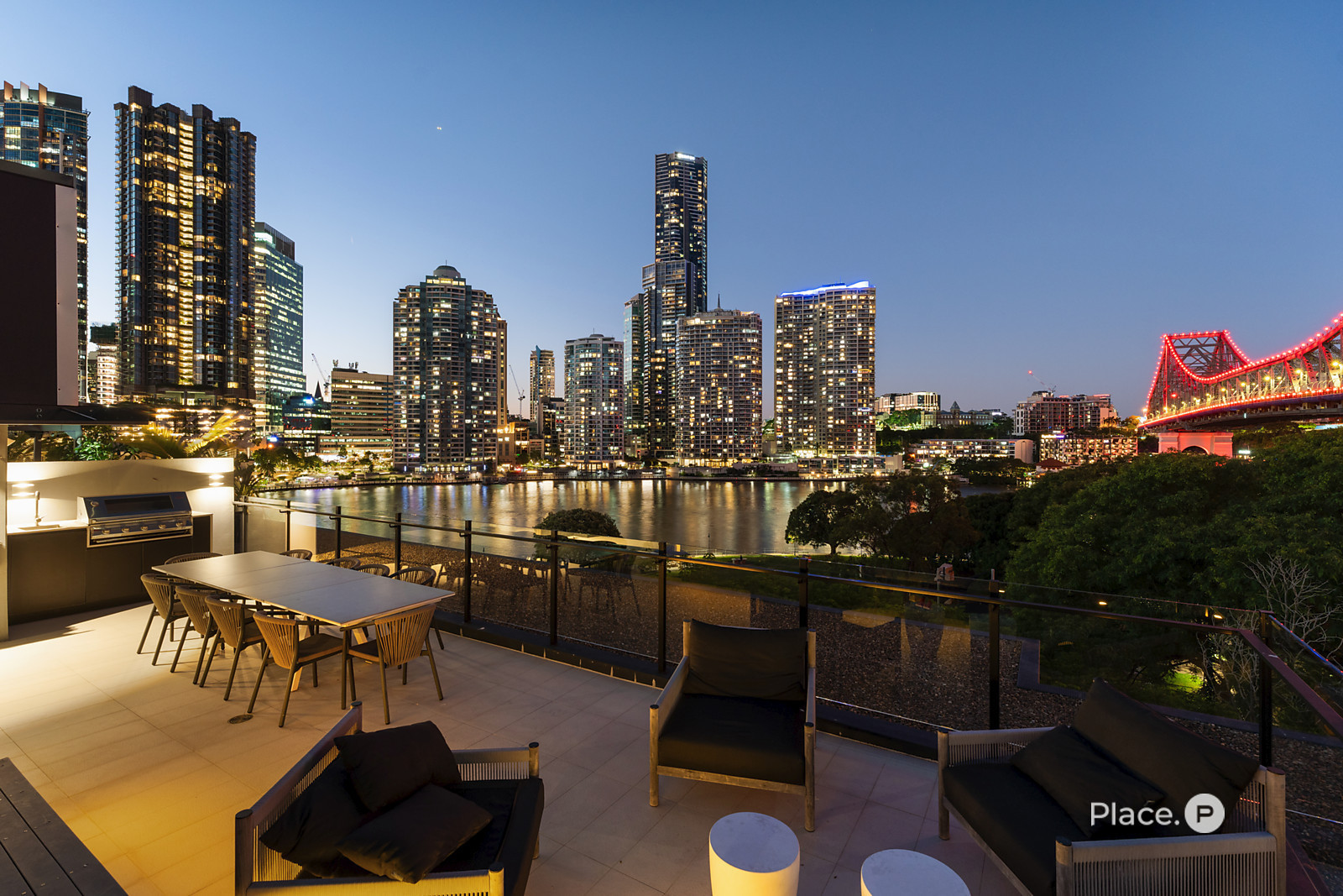 Perfectly positioned to overlook the greenery of Captain Burke Park, it has the feeling of a residential village with nearby outstanding restaurants, bars, riverside cafes, microbrewery, French patisserie, iconic jazz club and the historic Story Bridge Hotel.