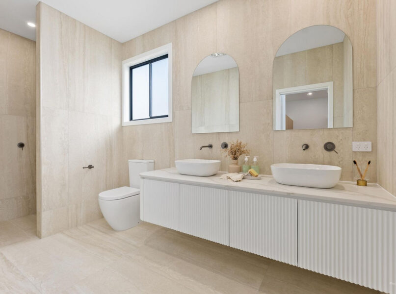 The upper level, houses all the bedrooms plus an additional living area. The master bedroom is located at one end of the second level, offering privacy and a sense of space. The master suite includes a generous walk in robe, ensuite with double basin, storage and shower plus a Juliet a private balcony. Moving from the master bedroom to the other bedrooms, they are separated by an oversized living area. At the other end of the level, the three bedrooms are complete with robes and access to a main bathroom.